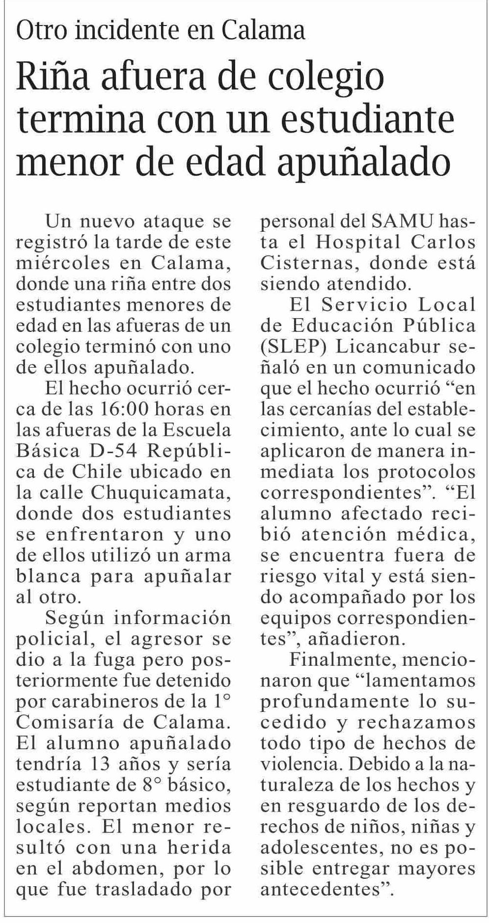 Riña afuera de colegio termina con un estudiante menor de edad apuñalado