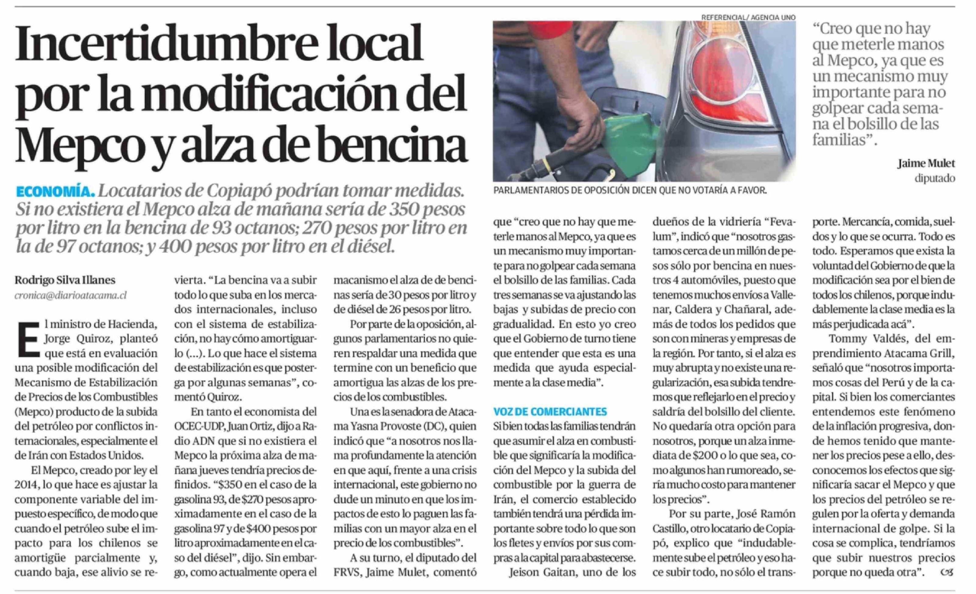 Incertidumbre local por la modificación del Mepco y alza de bencina