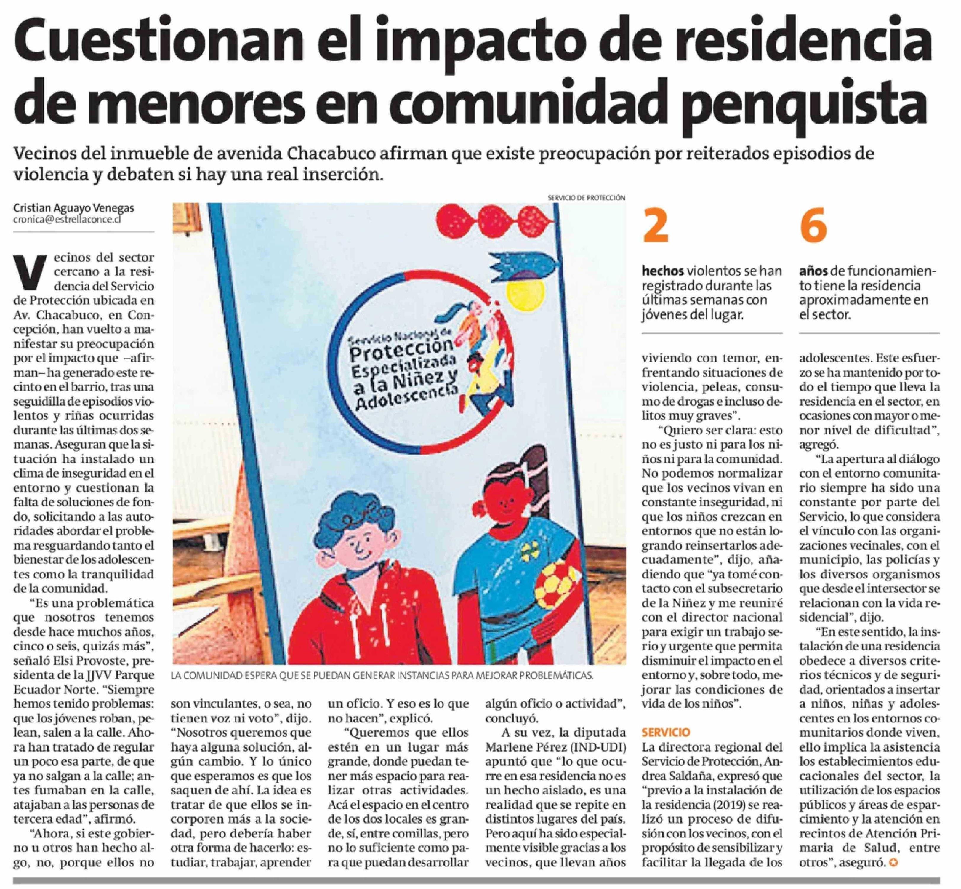 Título: Cuestionan el impacto de residencia de menores en comunidad penquista