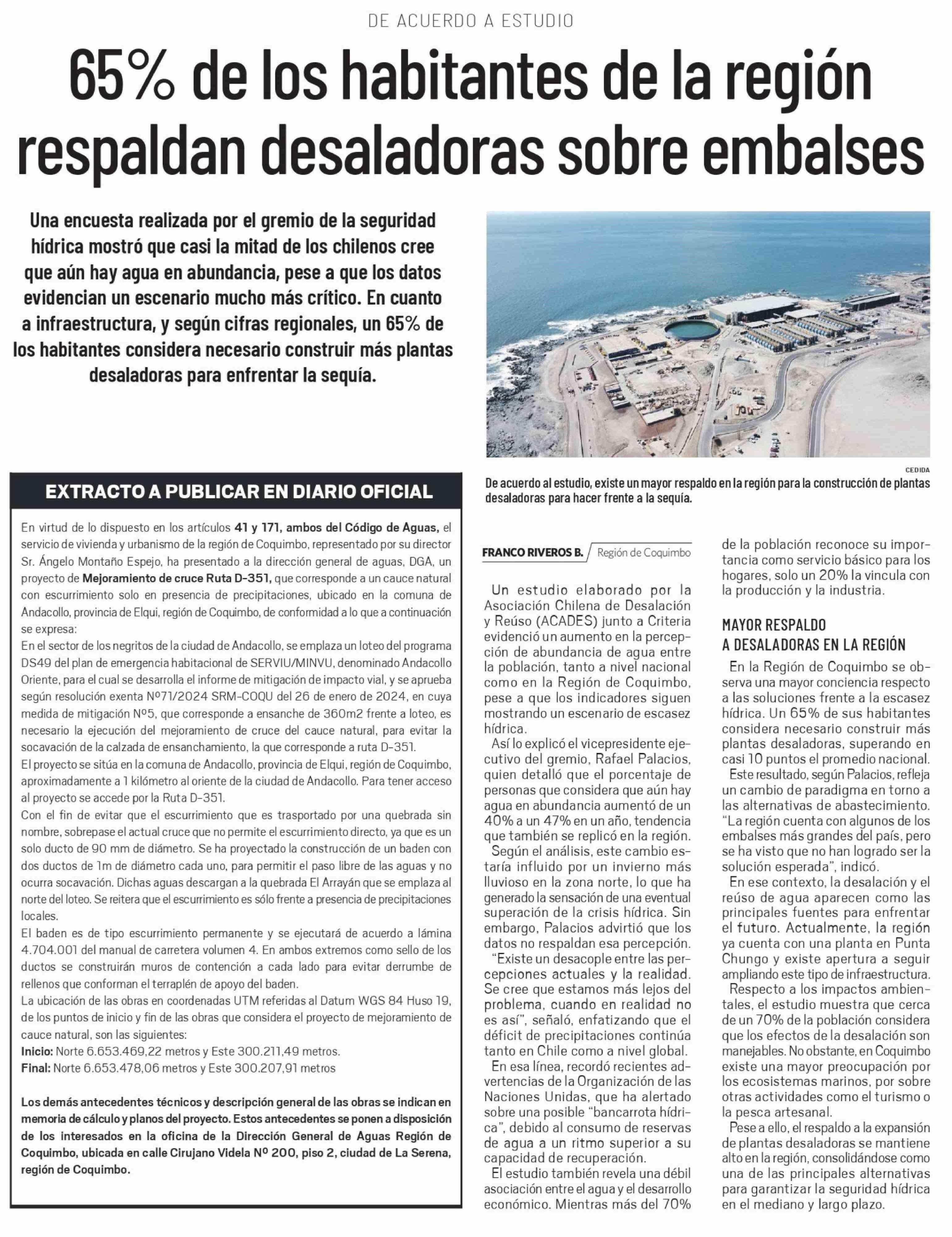 65% De los habitantes de la región respaldan desaladoras sobre embalses