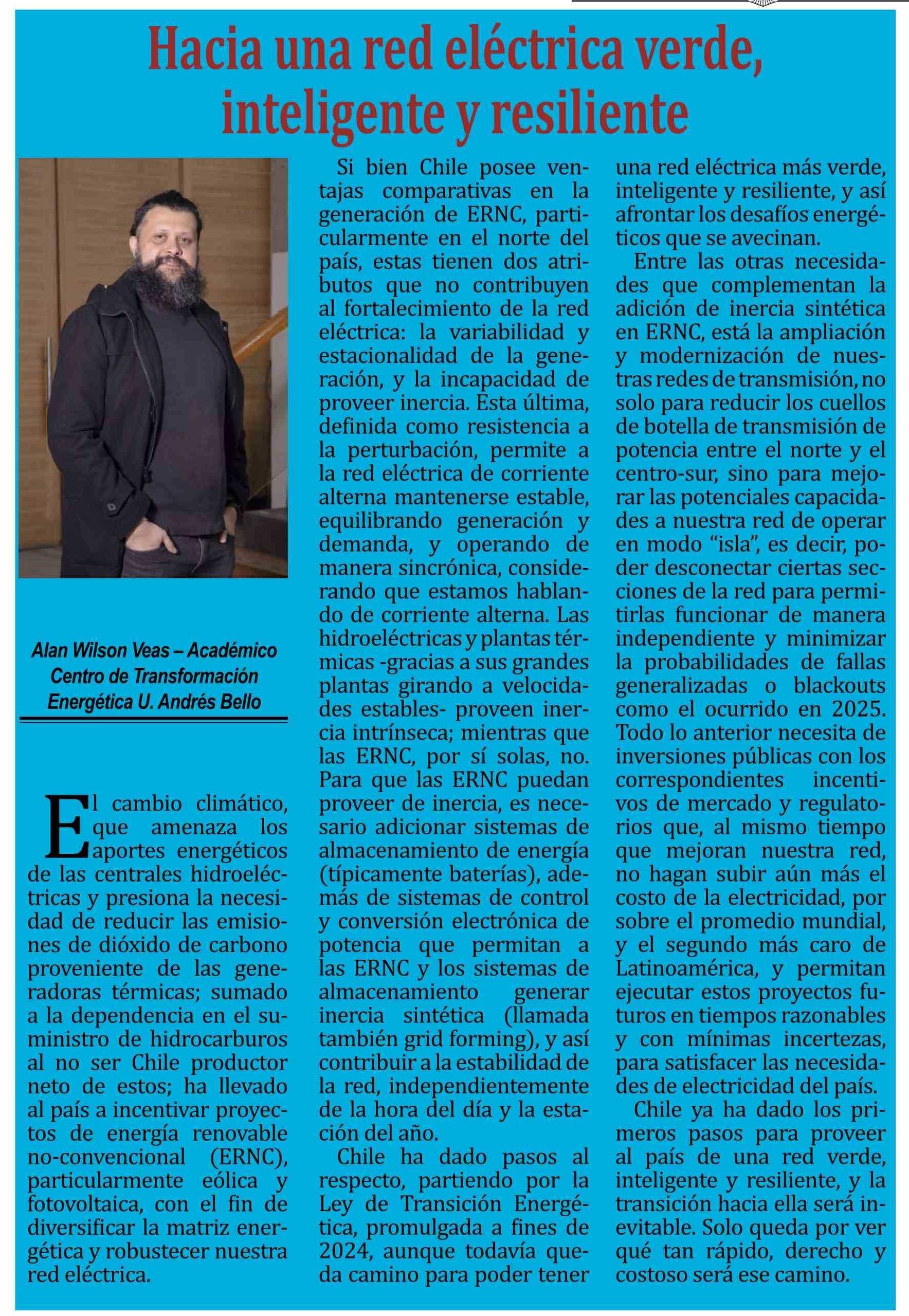 Columnas de Opinión: Hacia una red eléctrica verde, inteligente y resiliente