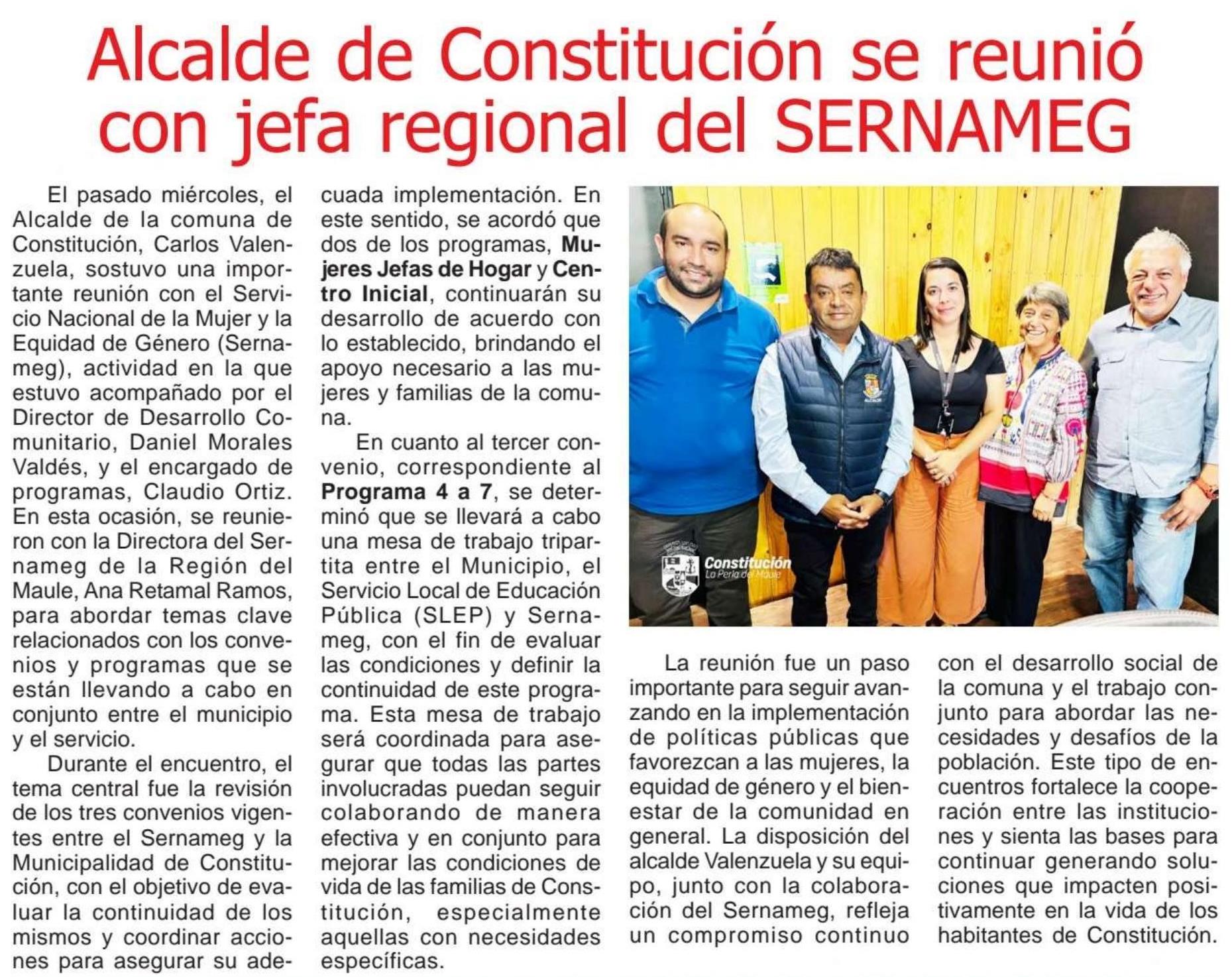 Alcalde de Constitución se reunió con jefa regional del SERNAMEG