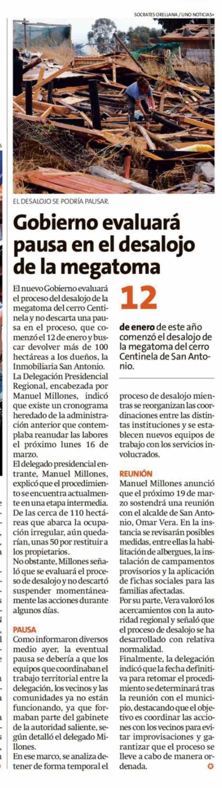Gobierno evaluará pausa en el desalojo de la megatoma