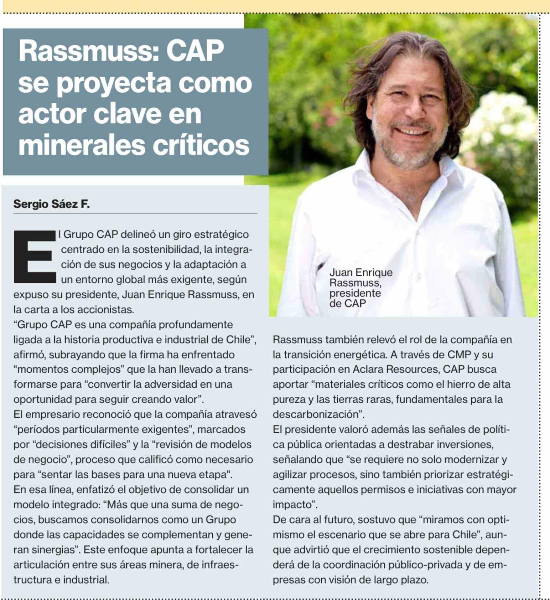 Título: Rassmuss: CAP se proyecta como actor clave en minerales críticos