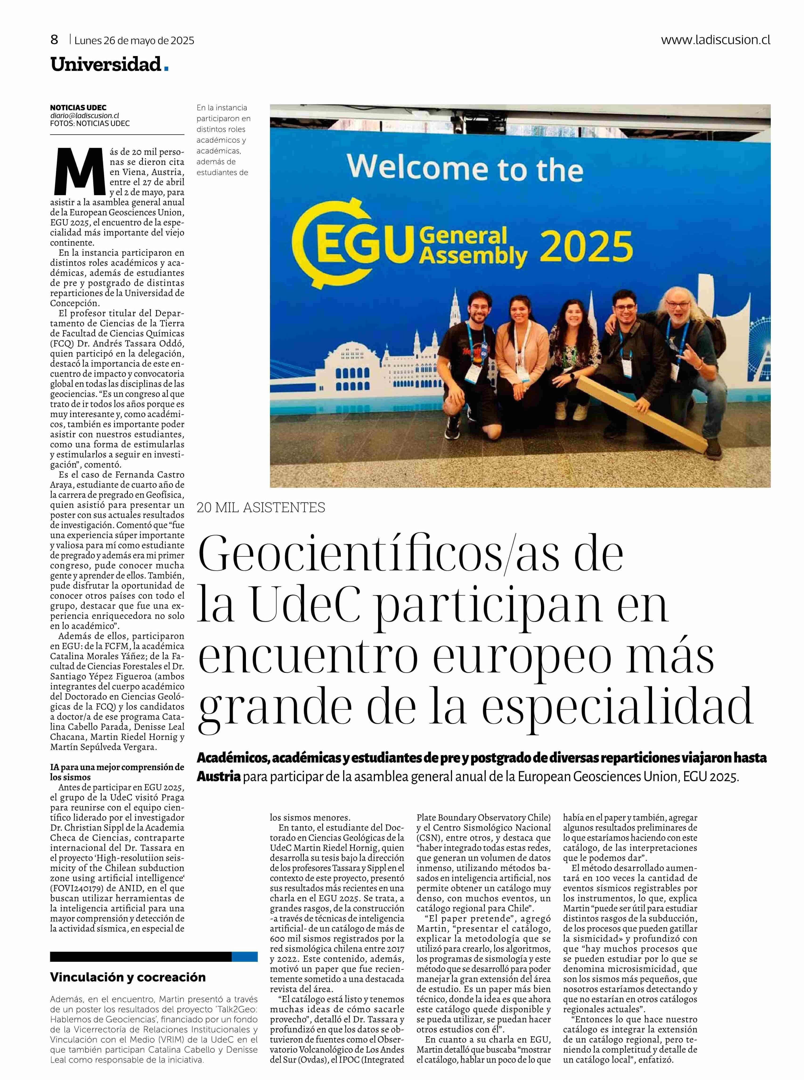 Título: Geocientíficos/as de la UdeC participan en encuentro europeo más grande de la especialidad
