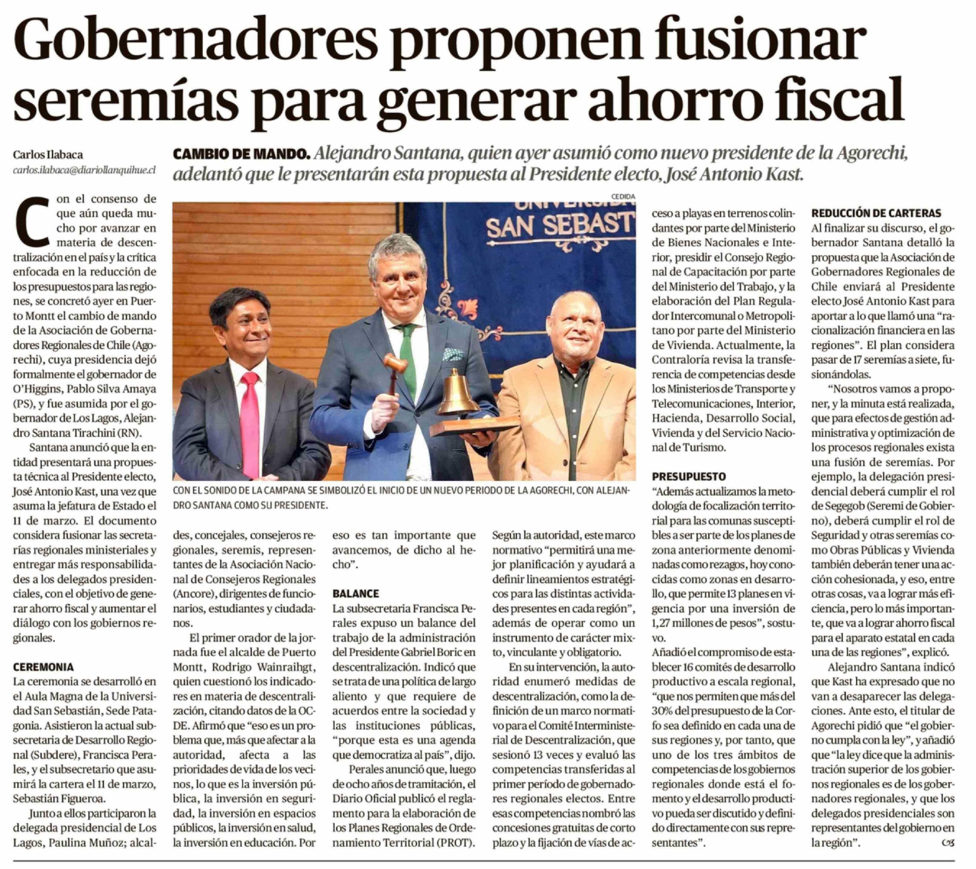 Título: Gobernadores proponen fusionar seremías para generar ahorro fiscal