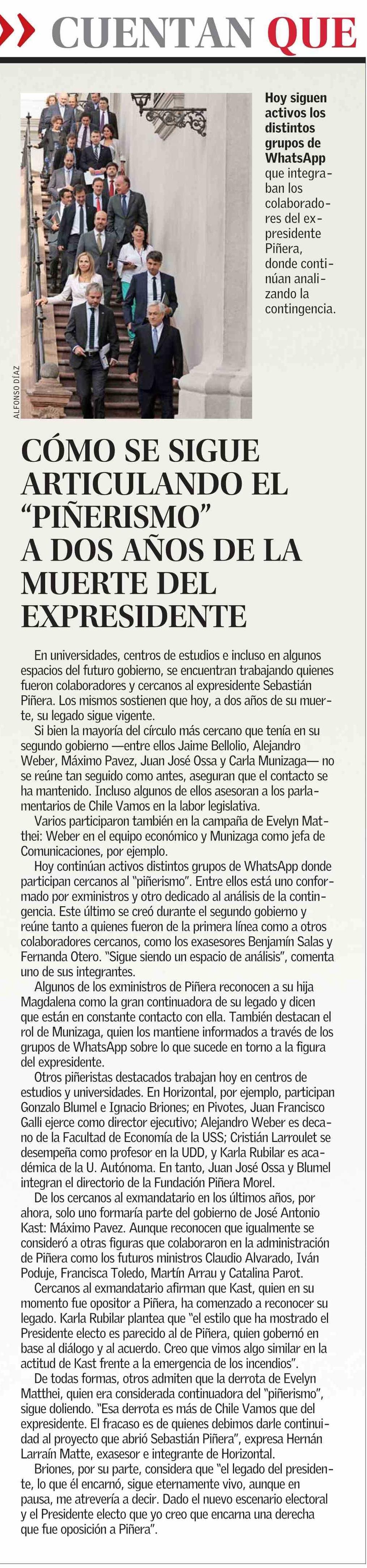 CÓMO SE SIGUE ARTICULANDO EL “PIÑERISMO” A DOS AÑOS DE LA MUERTE DEL EXPRESIDENTE
