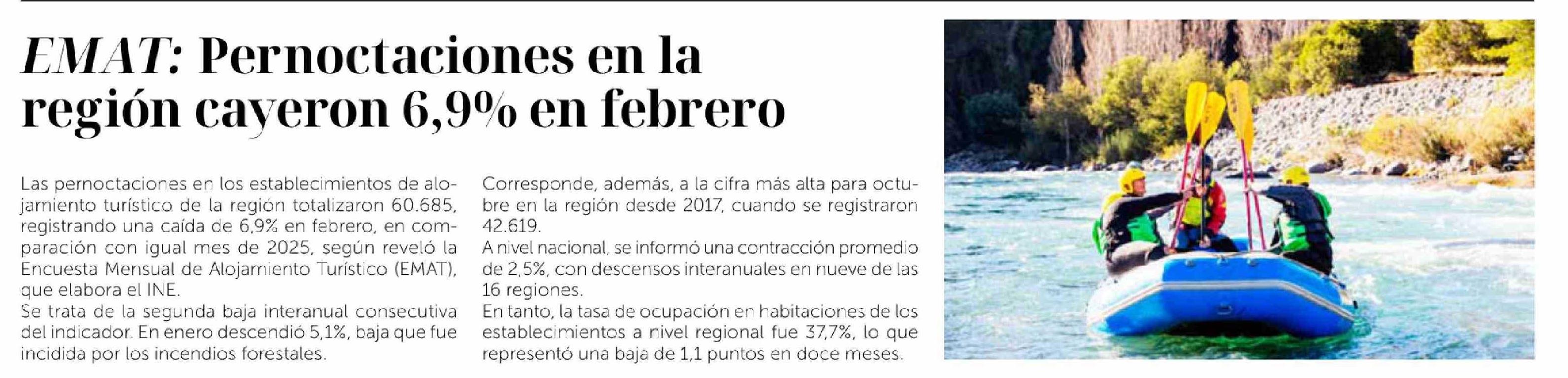 EMAT: Pernoctaciones en la región cayeron 6,9% en febrero