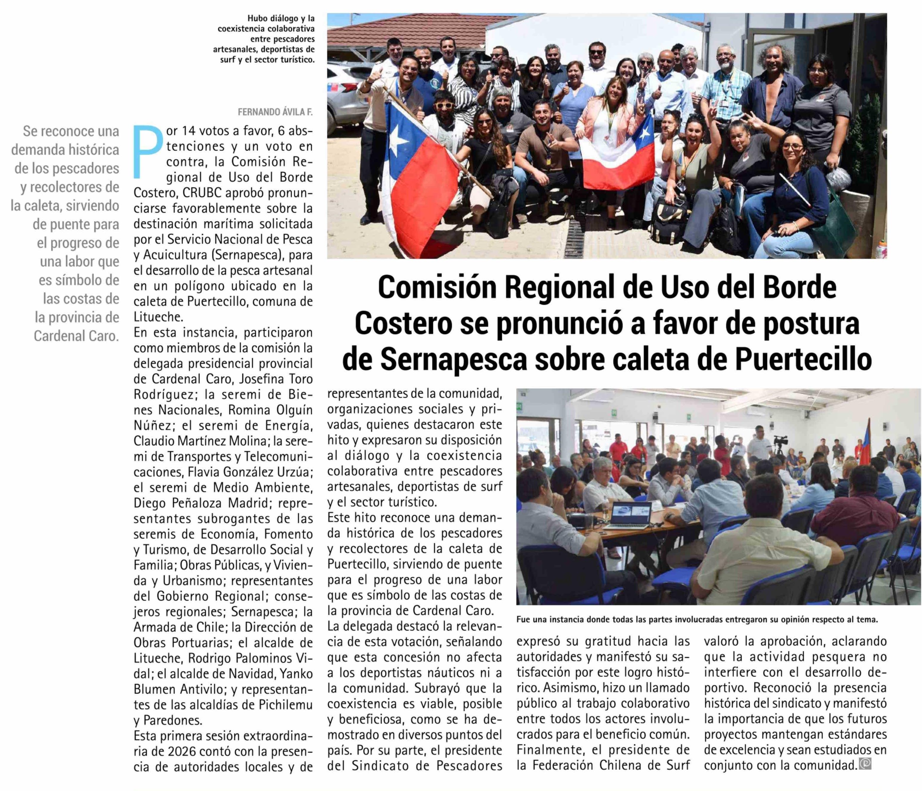 Comisión Regional de Uso del Borde Costero se pronunció a favor de postura de Sernapesca sobre caleta de Puertecillo