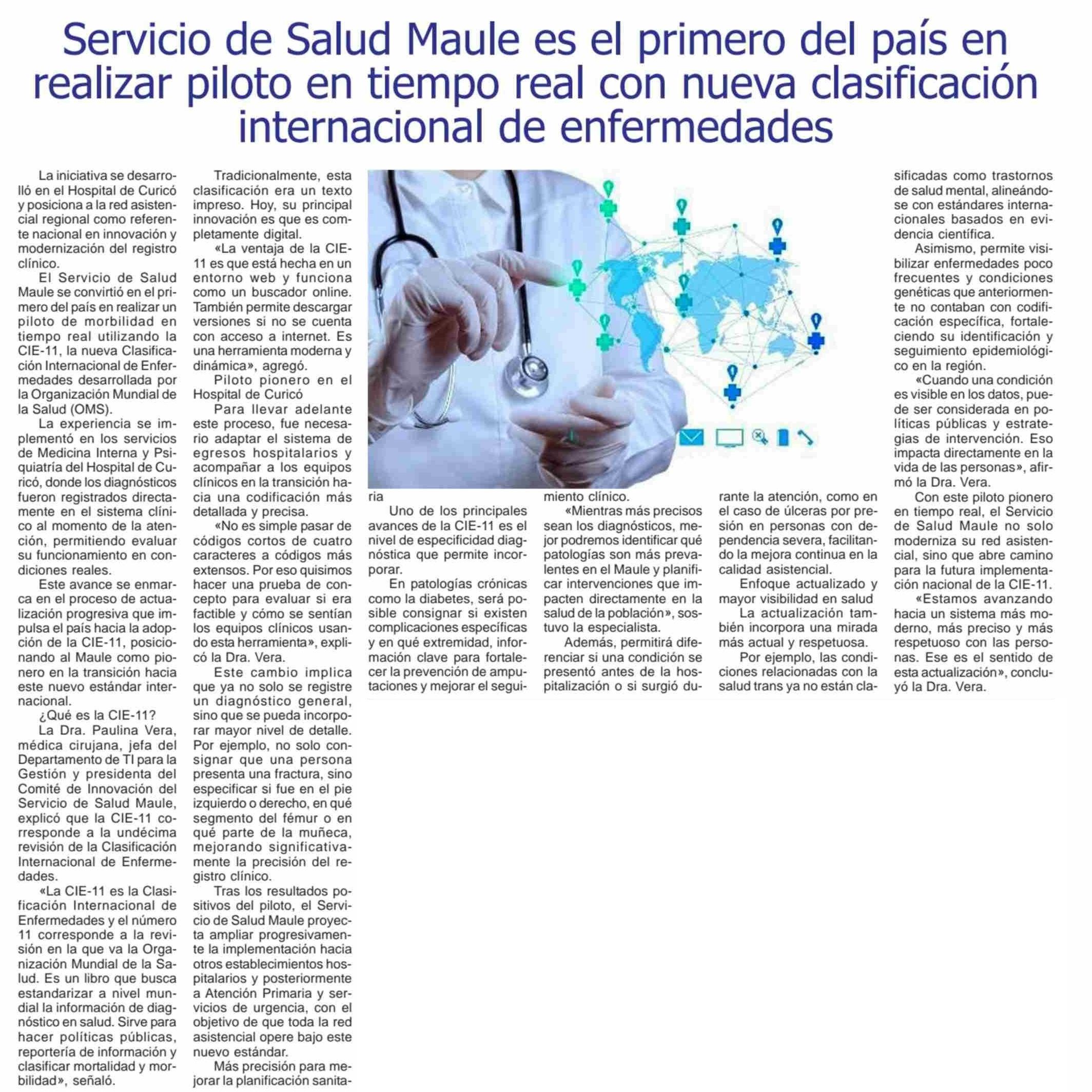Servicio de Salud Maule es el primero del país en realizar piloto en tiempo real con nueva clasificación internacional de enfermedades