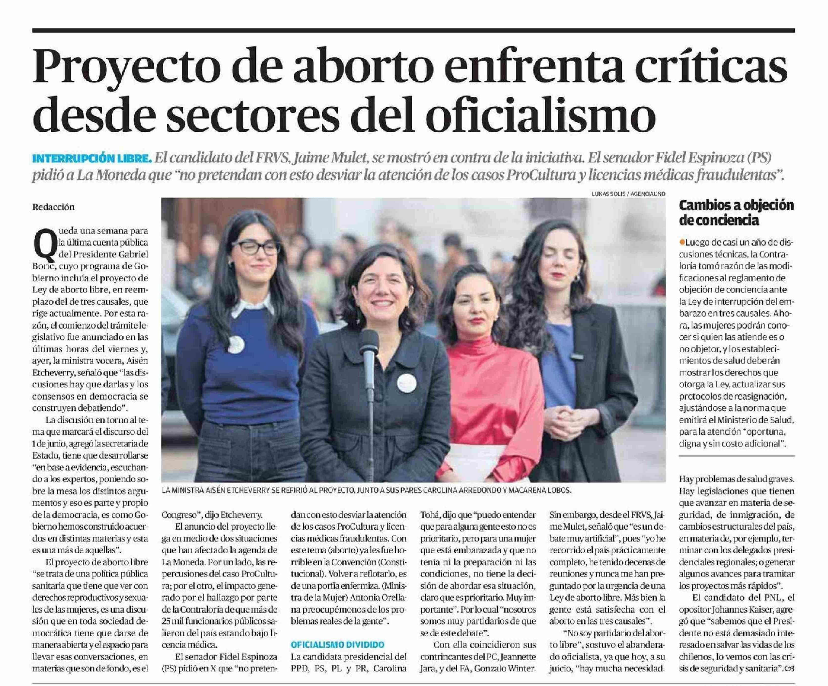 Proyecto de aborto enfrenta críticas desde sectores del oficialismo