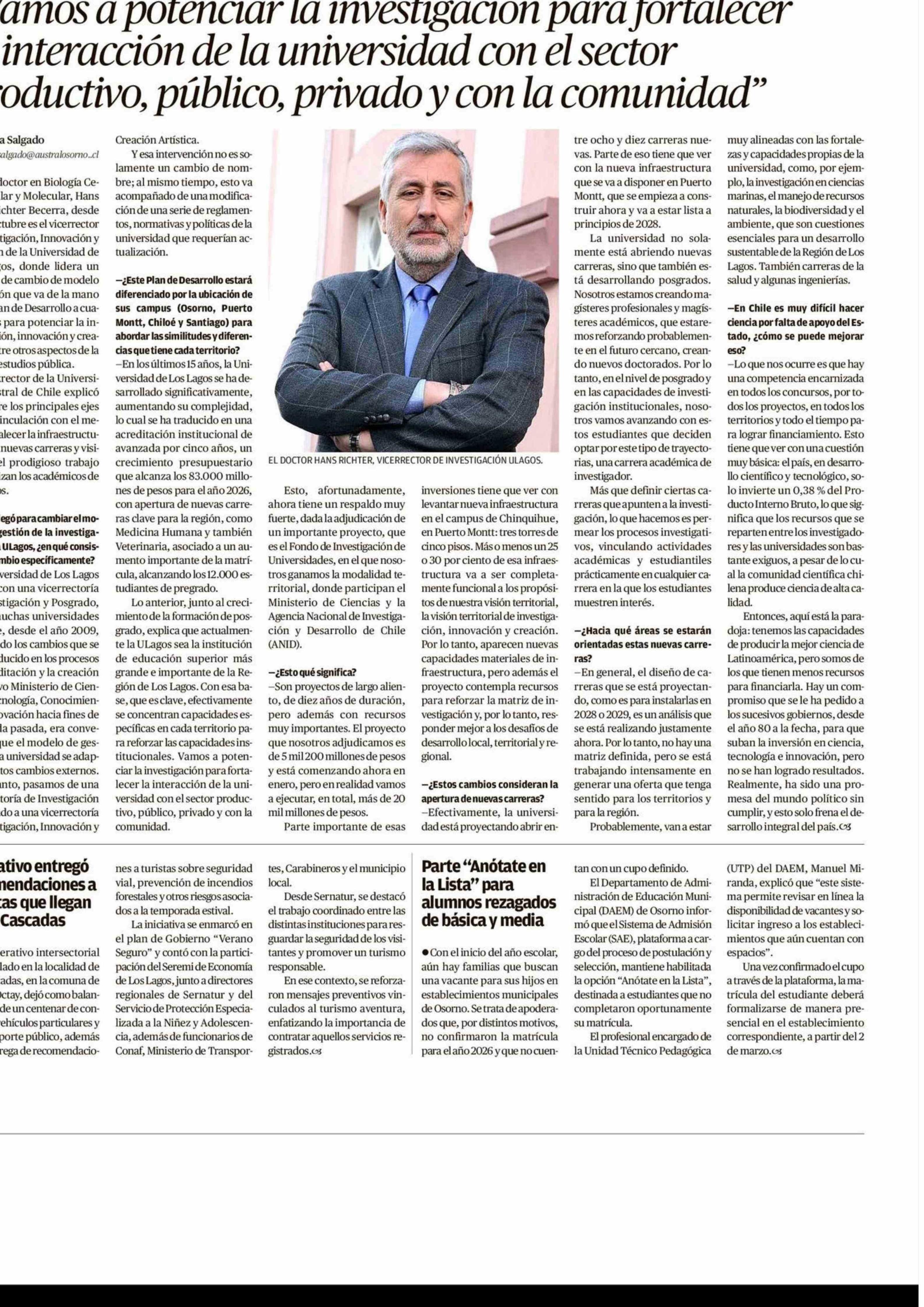 | Fecha: | 31-01-2026 | Sector: | Noticia general | Región: | Región de Los Lagos |