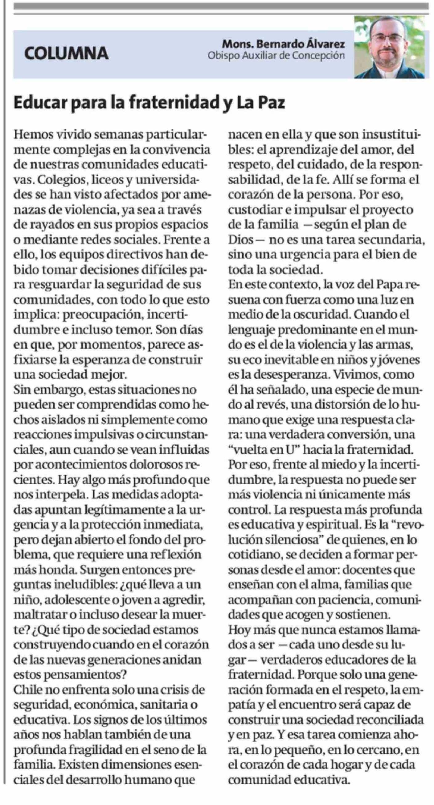 Columnas de Opinión: Educar para la fraternidad y La Paz