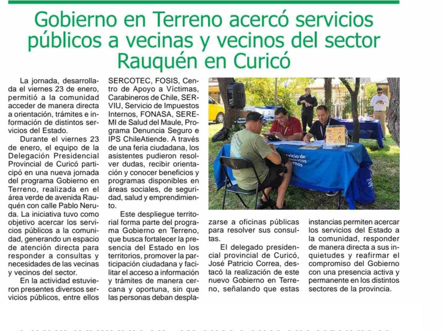 Gobierno en Terreno acercó servicios públicos a vecinas y vecinos del sector Rauquén en Curicó