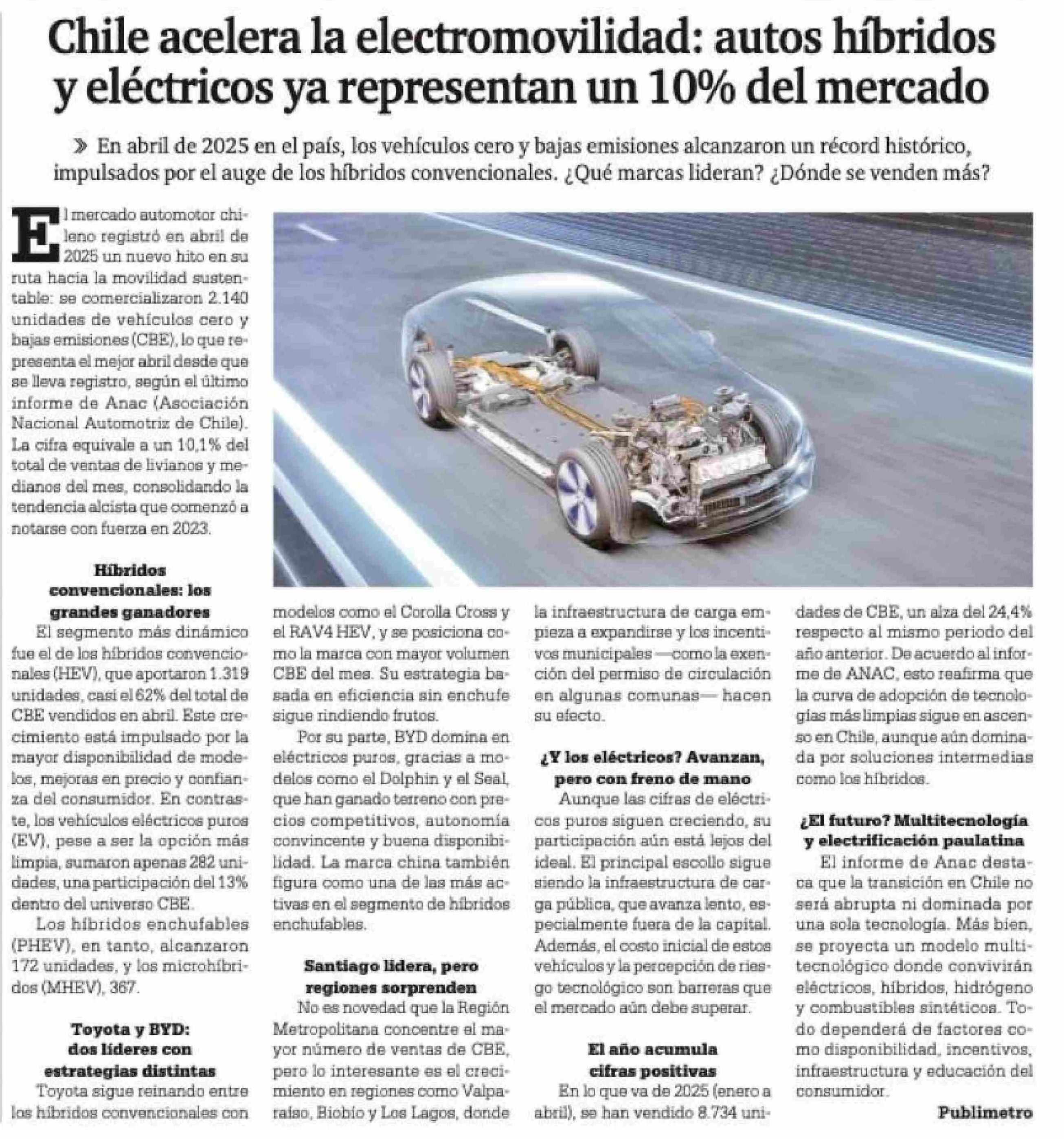Chile acelera la electromovilidad: autos híbridos y eléctricos ya representan un 10% del mercado