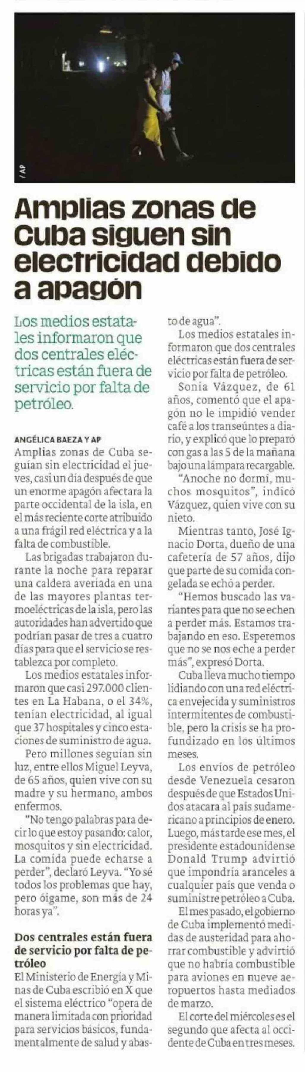 Amplias zonas de Cuba siguen sin electricidad debido a apagon