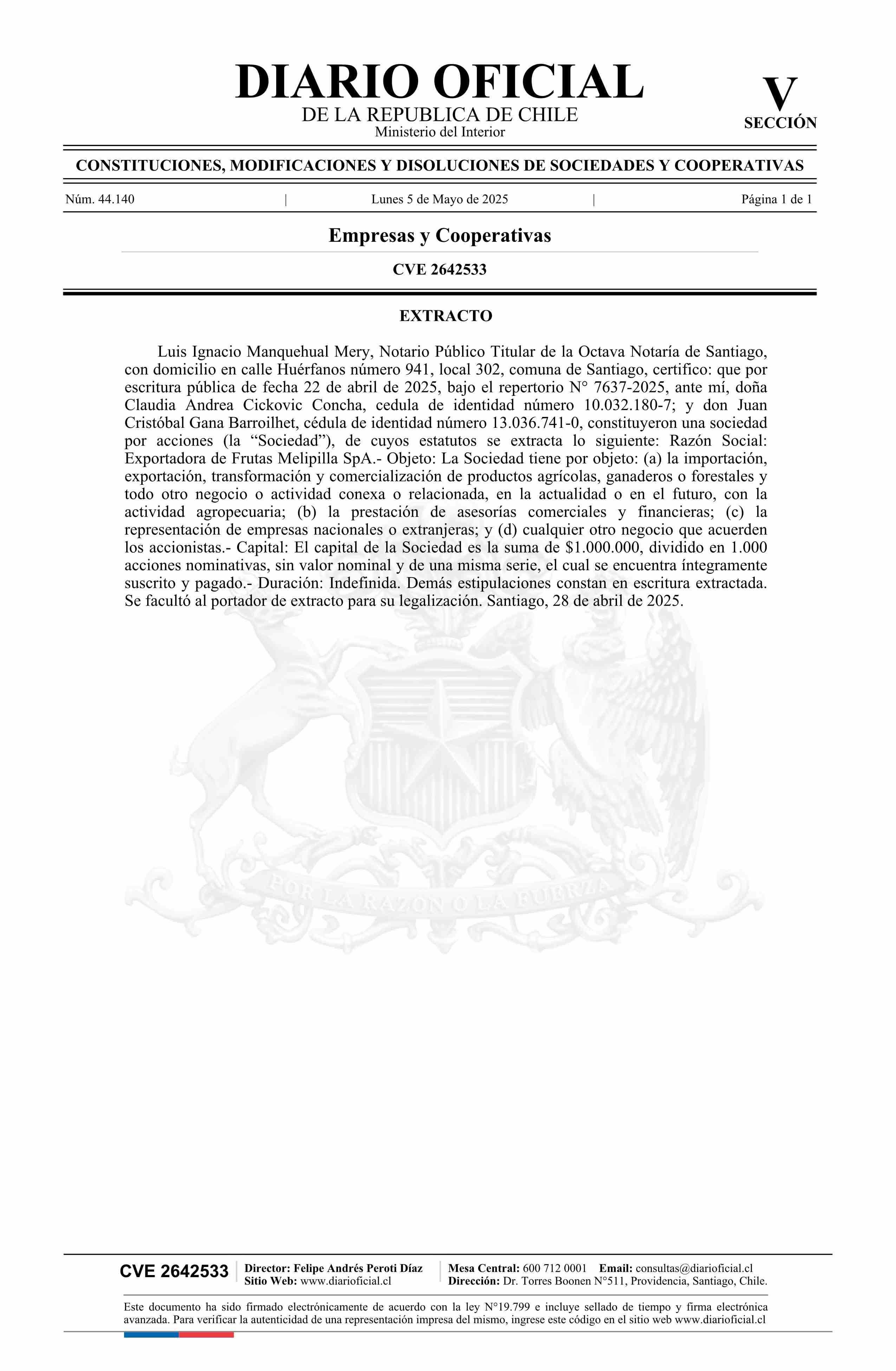Diario Oficial Edición Electrónica (Diario Oficial de Chile - 5 Empresas Y Cooper)