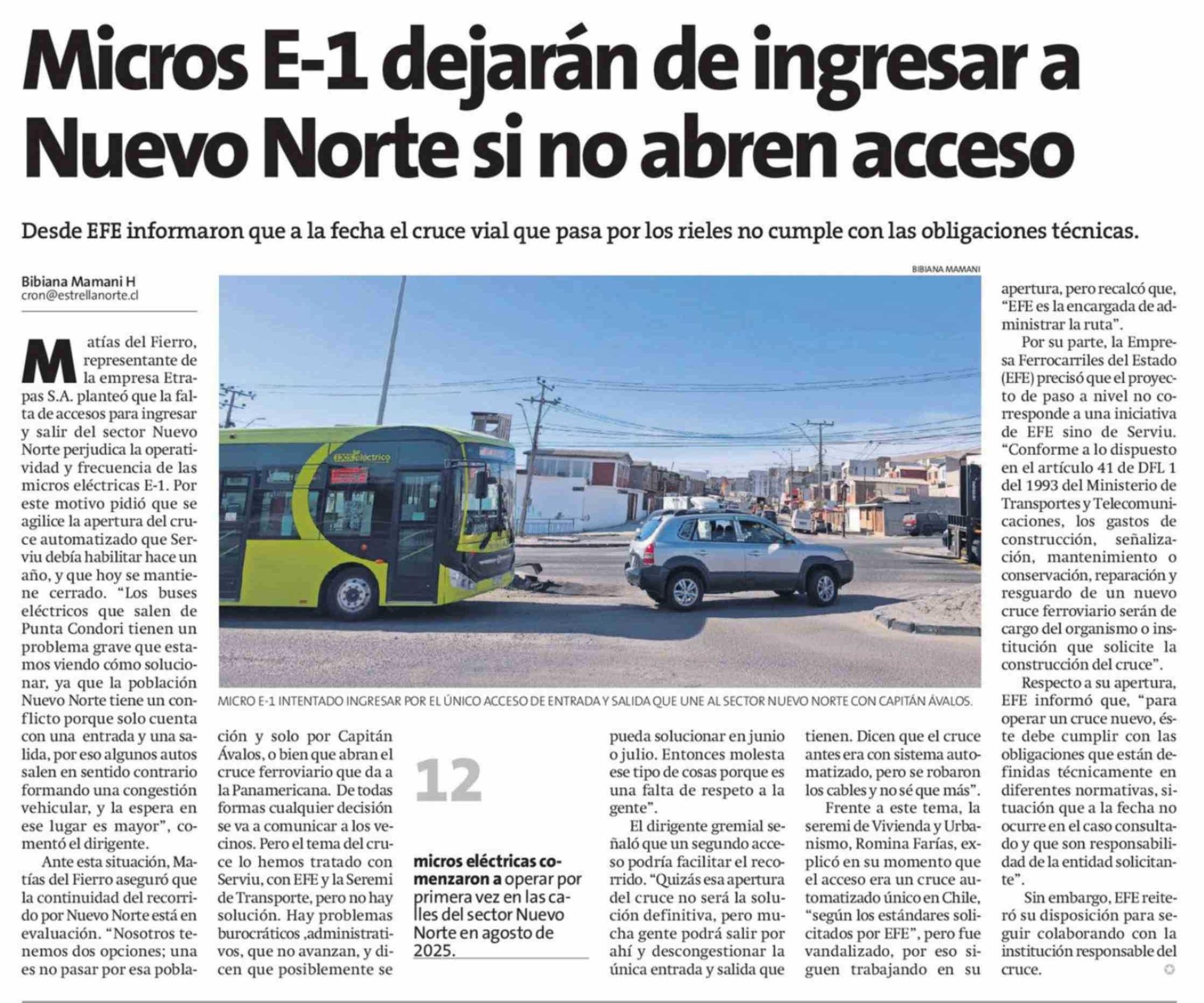 Micros E-1 dejarán de ingresar a Nuevo Norte si no abren acceso