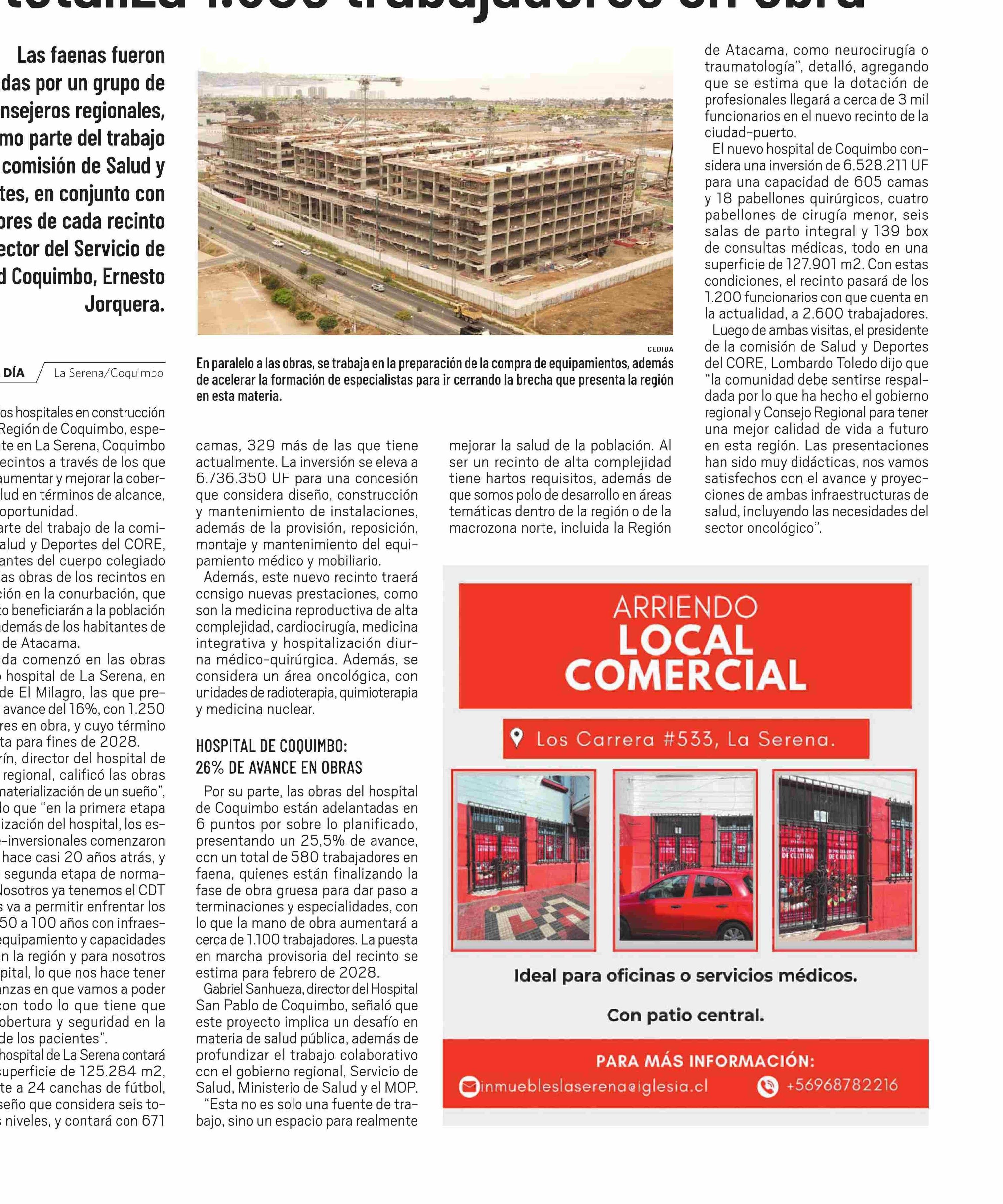 Construcción de los nuevos hospitales totaliza 1.830 trabajadores en obra
