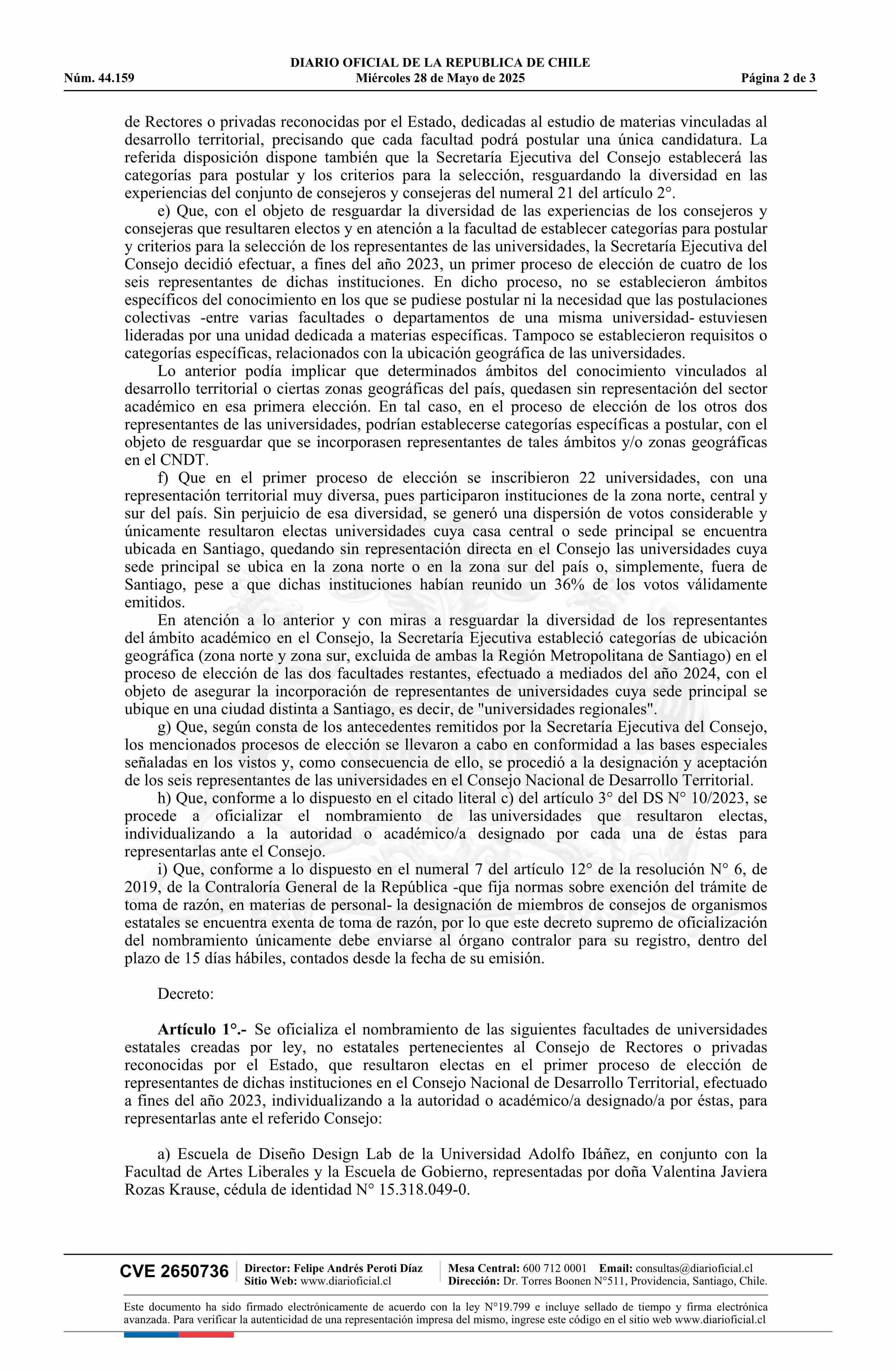 | Título: | Decreto exento número 81, de 2024.- Oficializa el nombramiento de seis representantes de universidades en el Consejo Nacional de Desarrollo Territorial |