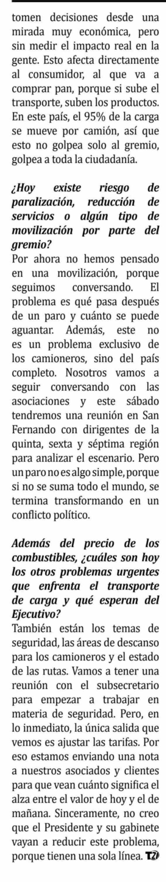 "Muchos camioneros van a preferir quedarse en la casa y no trabajar"