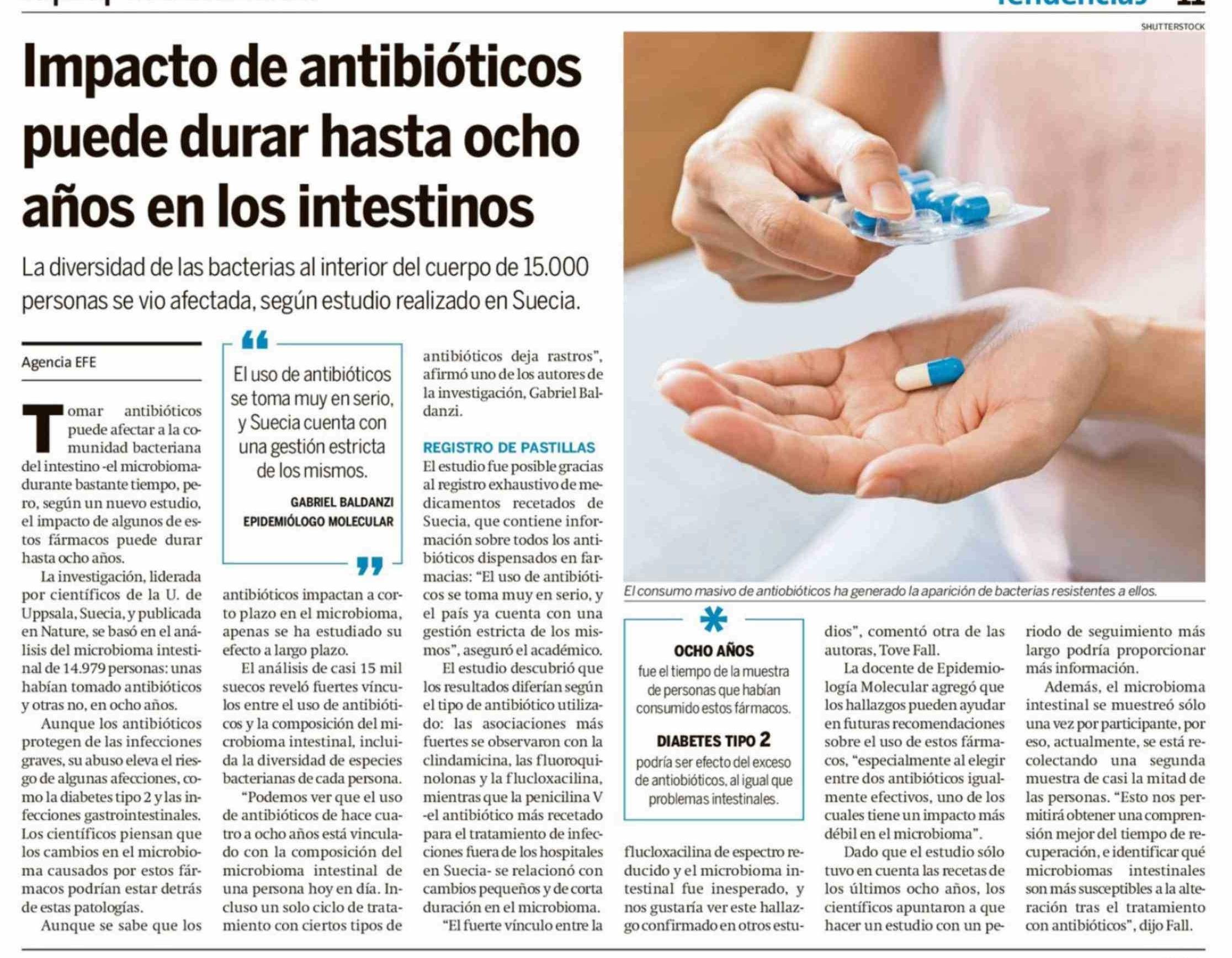 Impacto de antibióticos puede durar hasta ocho años en los intestinos