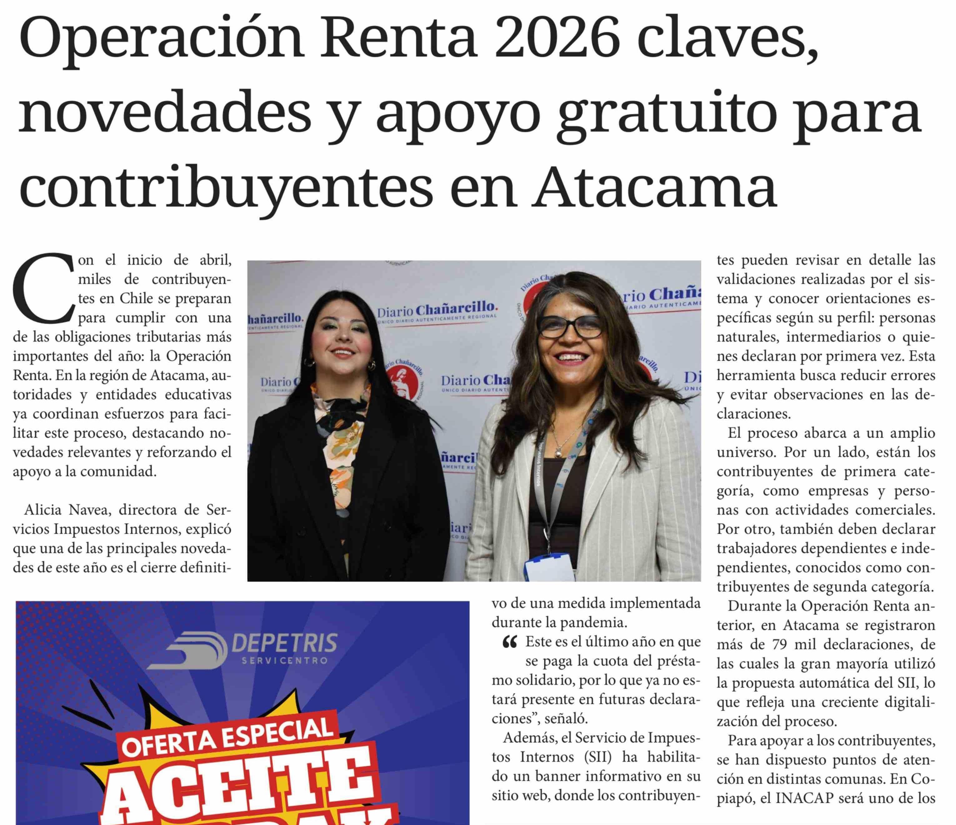 Operación Renta 2026 claves, novedades y apoyo gratuito para contribuyentes en Atacama