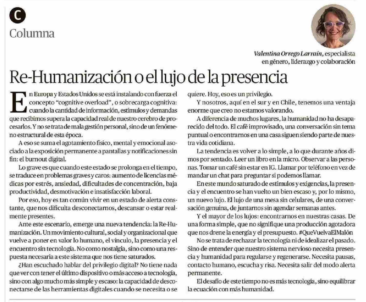 COLUMNAS DE OPINIÓN: Re-Humanización o el lujo de la presencia