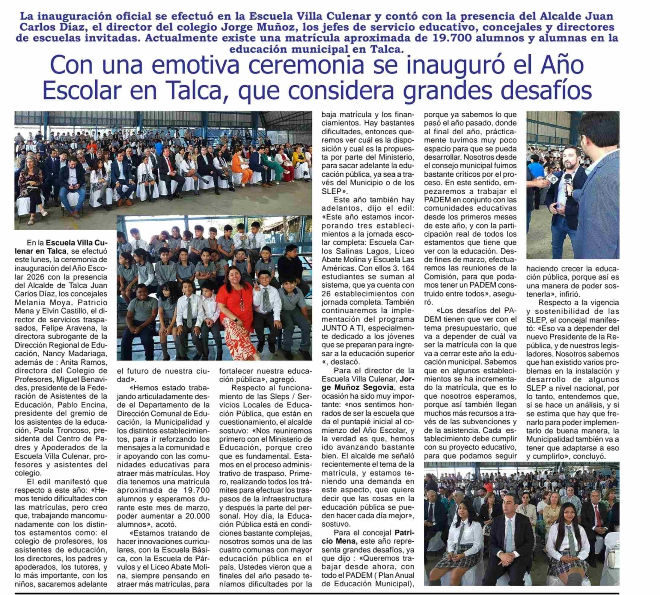 Con una emotiva ceremonia se inauguro el Ano Escolar en Talca, que considera grandes desafíos