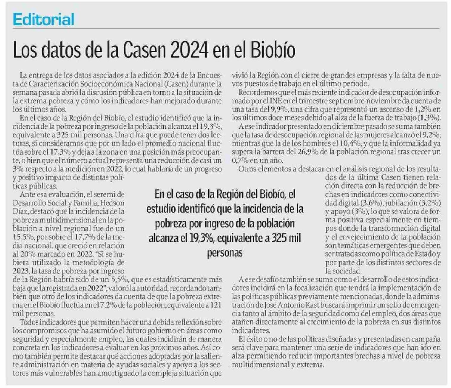 Editorial: Los datos de la Casen 2024 en el Biobío