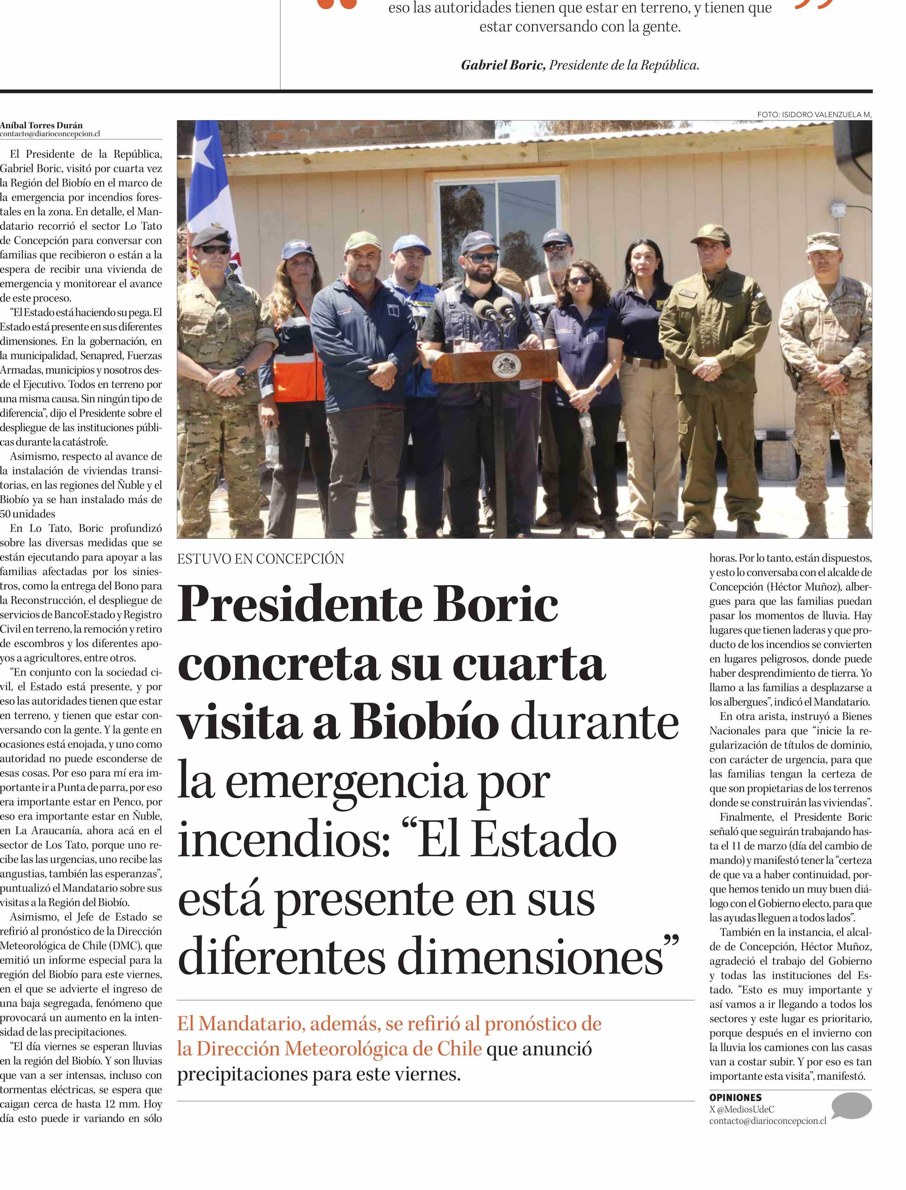 Presidente Boric concreta su cuarta visita a Biobío durante la emergencia por incendios: "El Estado está presente en sus diferentes dimensiones"