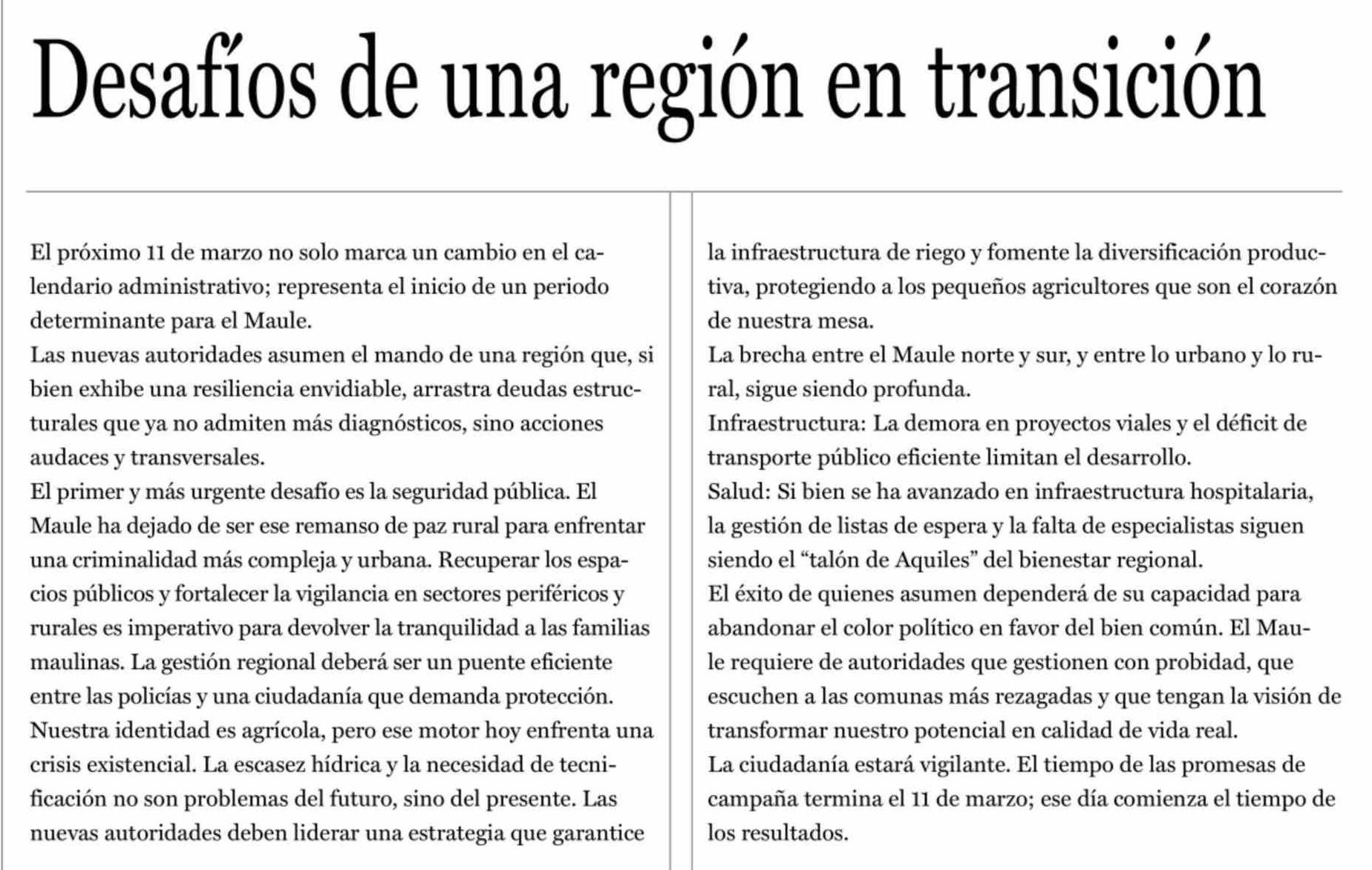 Editorial: Desafíos de una región en transición