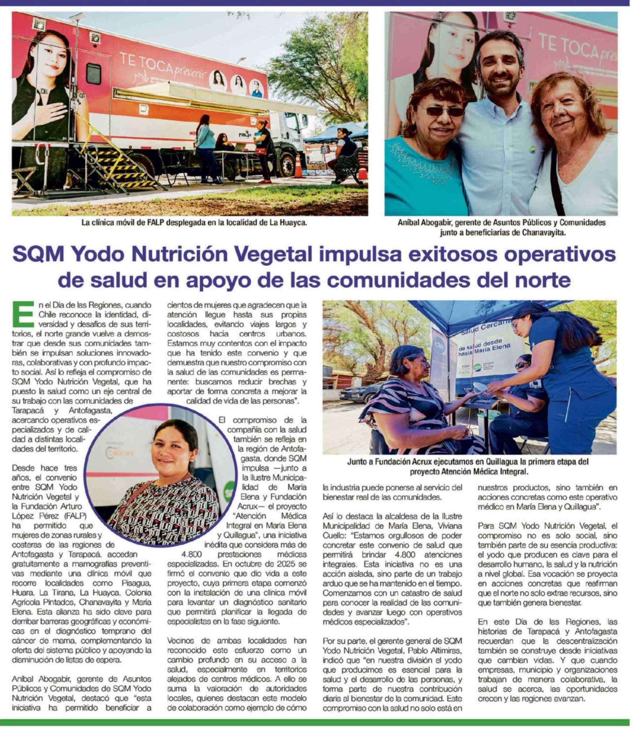 Título: SQM Yodo Nutrición Vegetal impulsa exitosos operativos de salud en apoyo de las comunidades del norte