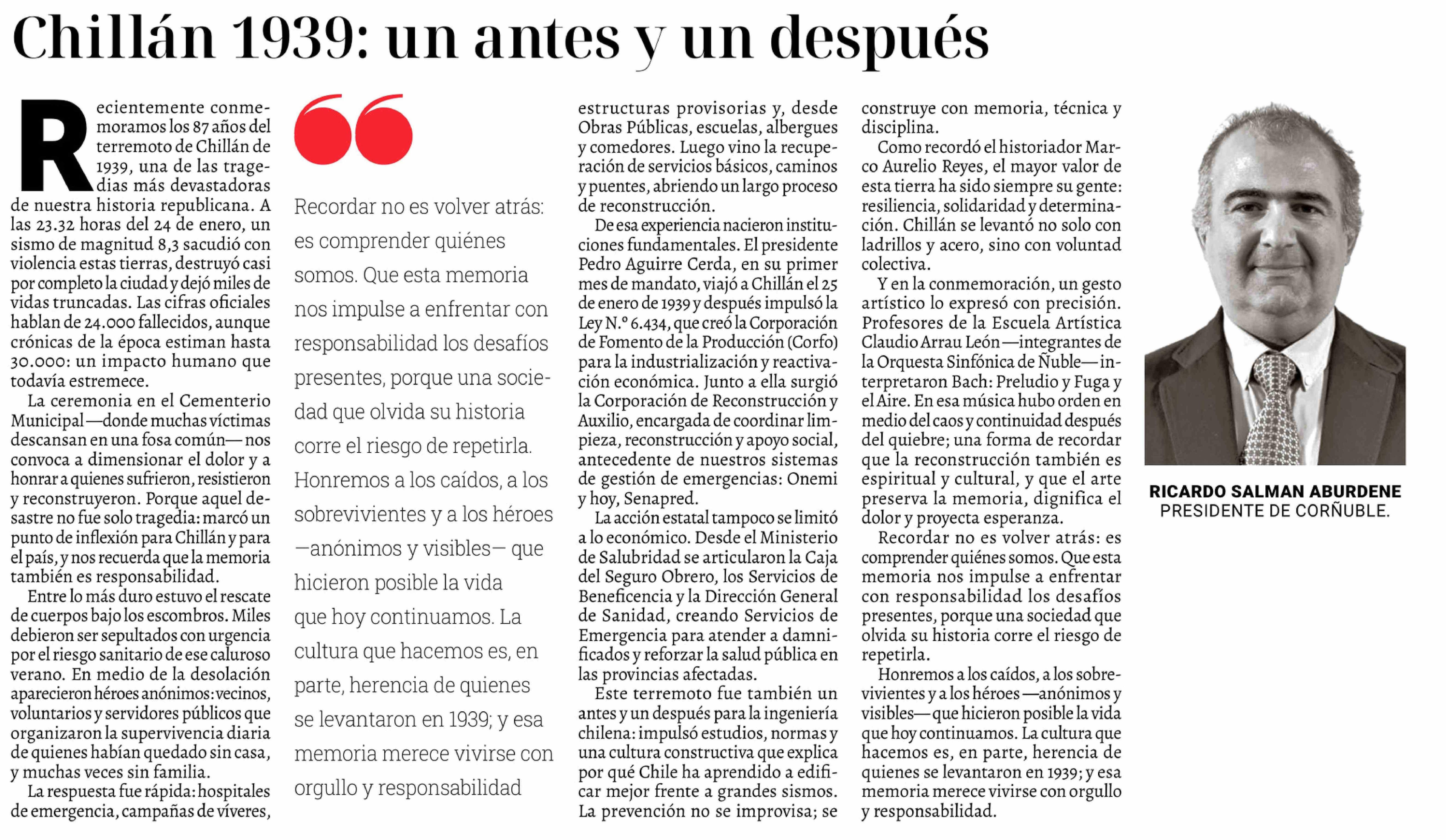 Título: Columnas de Opinión: Chillán 1939: un antes y un después