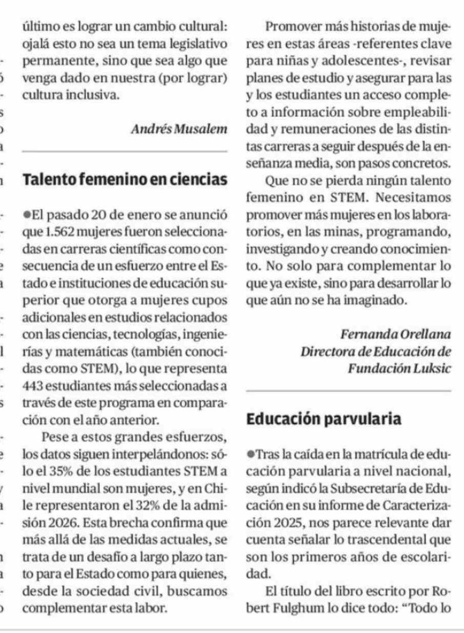 Cartas: Talento femenino en ciencias