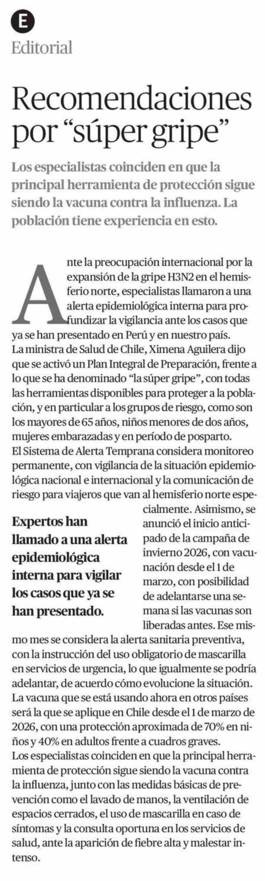 Editorial: Recomendaciones por "súper gripe"