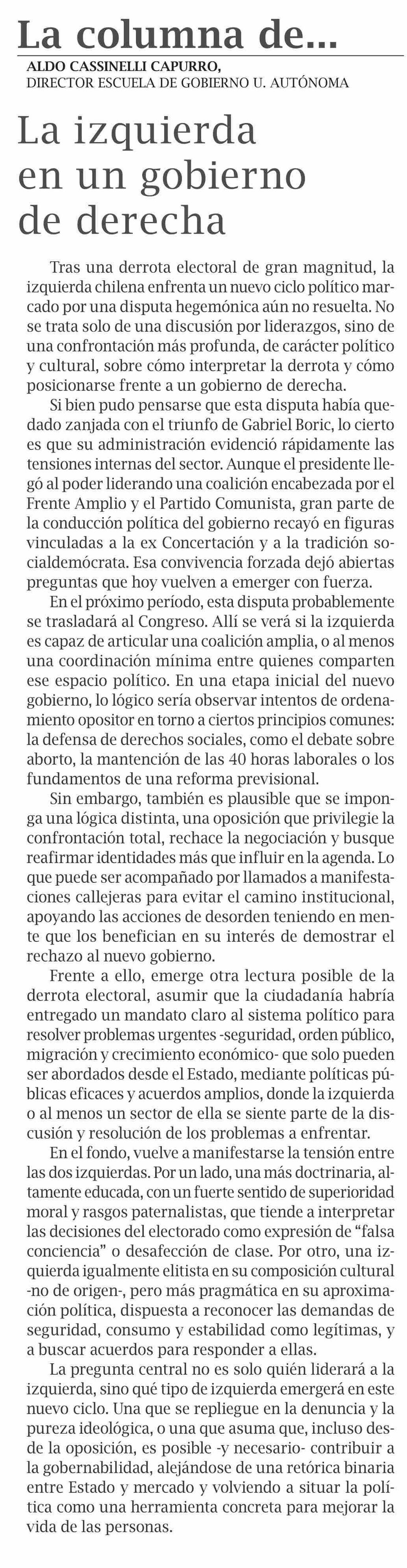 Columnas de Opinión: La izquierda en un gobierno de derecha