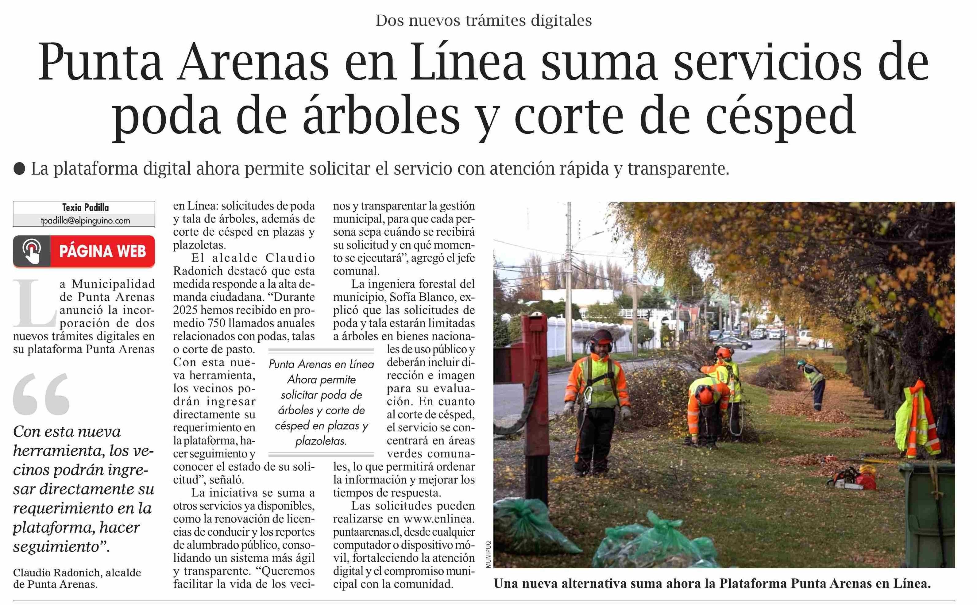 Punta Arenas en Línea suma servicios de poda de árboles y corte de césped