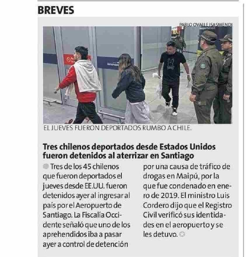 Tres chilenos deportados desde Estados Unidos fueron detenidos al aterrizar en Santiago