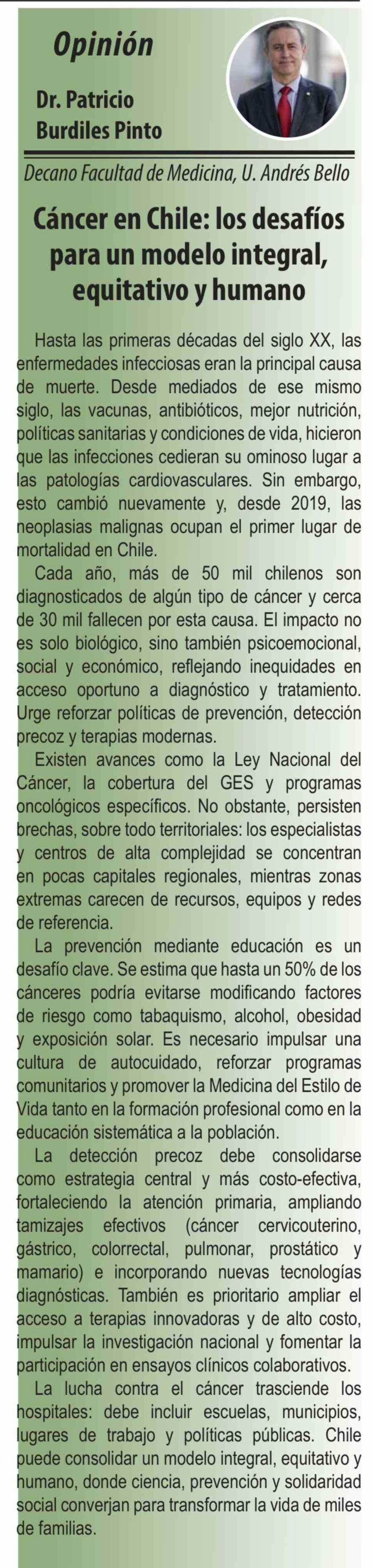 Columnas de Opinión: Cáncer en Chile: los desafíos para un modelo integral, equitativo y humano