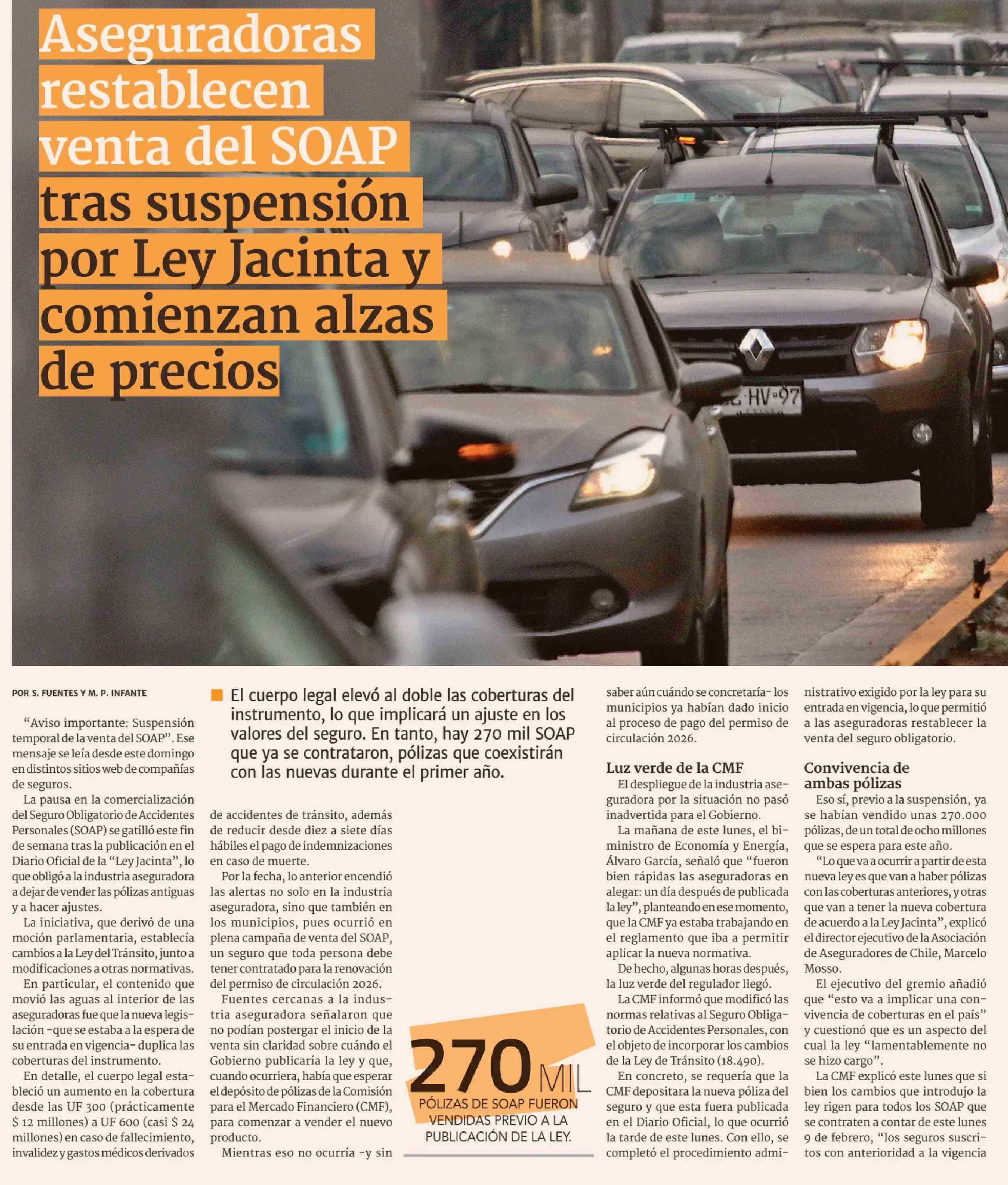 Aseguradoras restablecen venta del SOAP tras suspensión por Ley Jacinta y comienzan alzas de precios