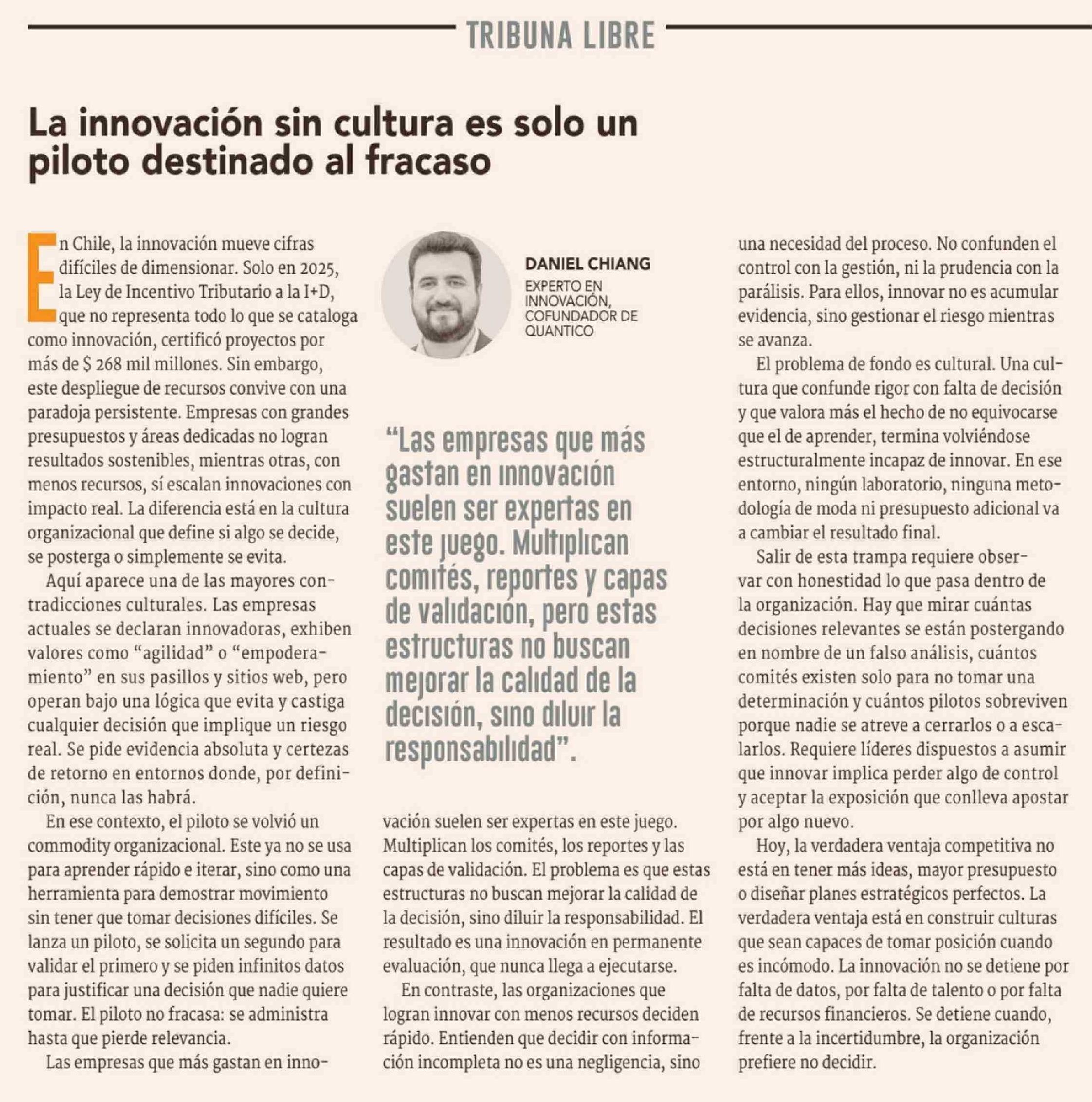 Columnas de Opinión: La innovación sin cultura es solo un piloto destinado al fracaso
