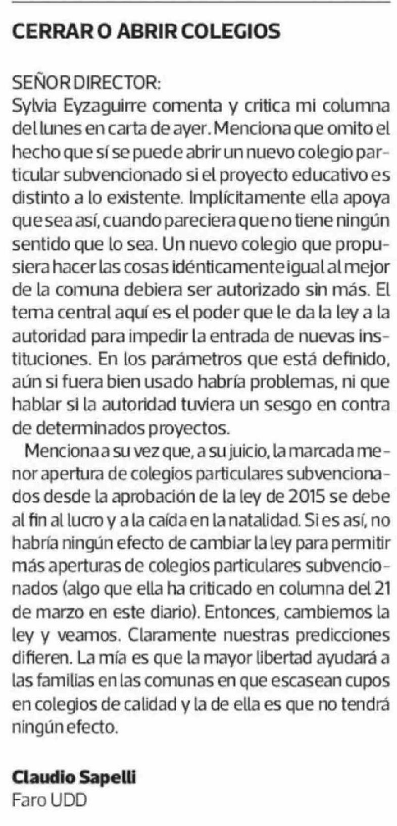 CARTAS: CERRAR O ABRIR COLEGIOS