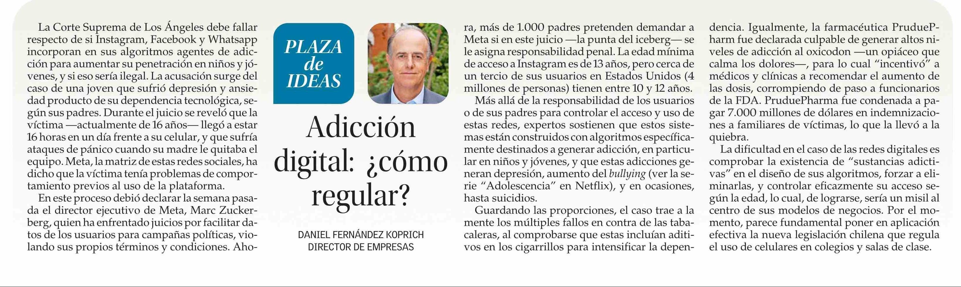 Título: COLUMNAS DE OPINIÓN: Adicción digital: ¿cómo regular?