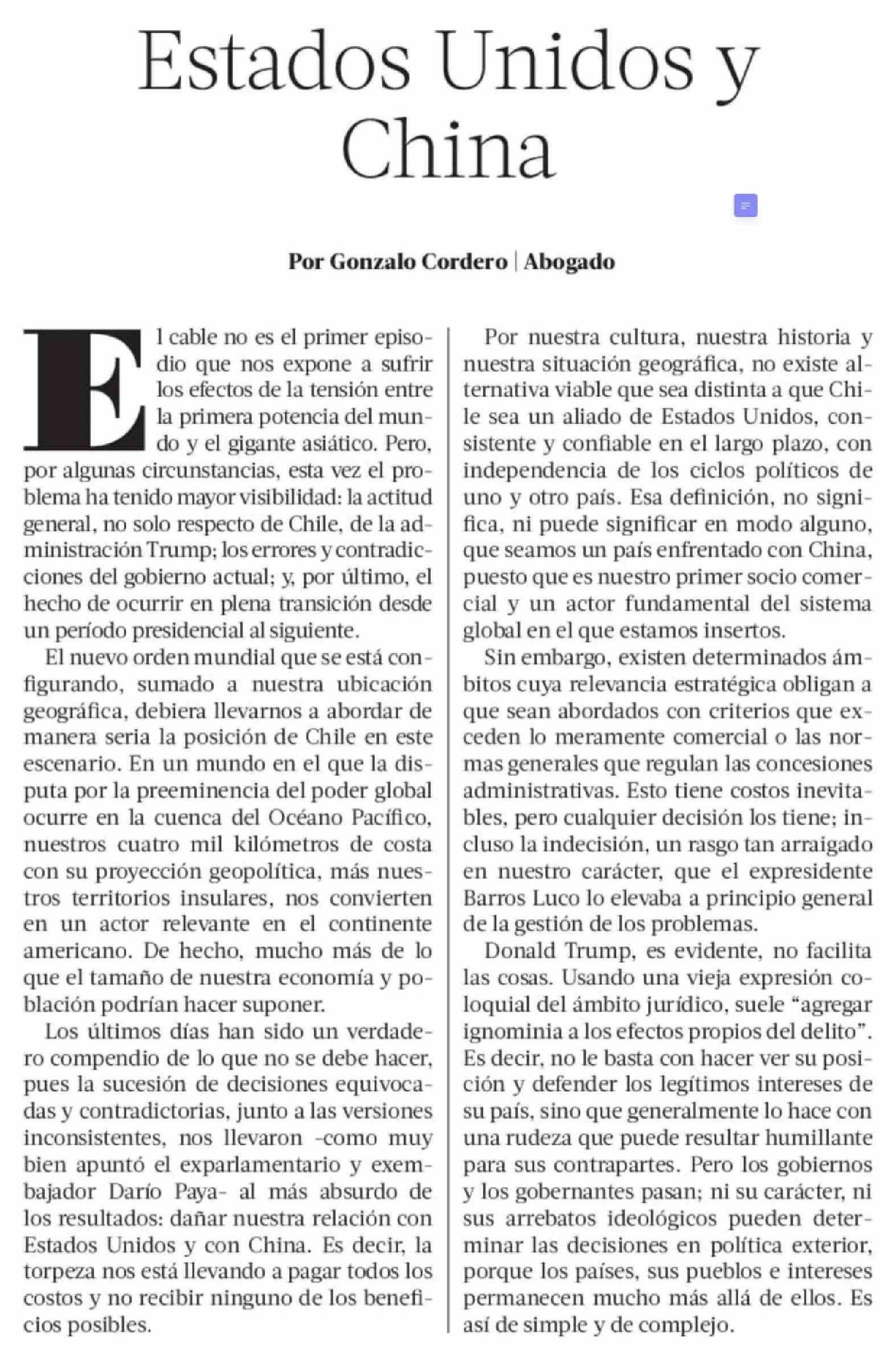 Columnas de Opinión: Estados Unidos y China