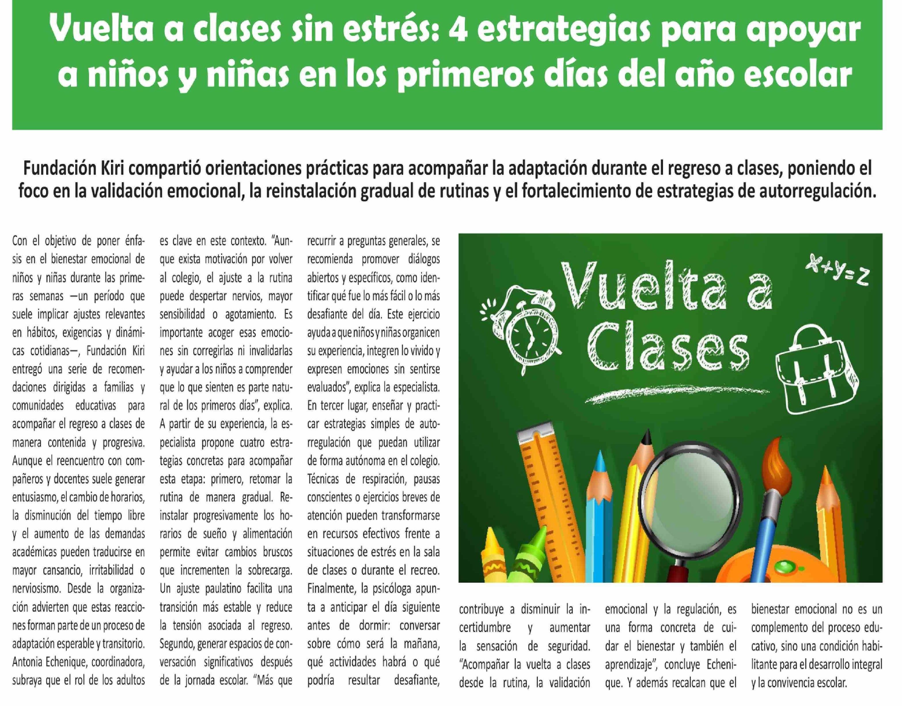 Vuelta a clases sin estrés: 4 estrategias para apoyar a niños y niñas en los primeros días del año escolar