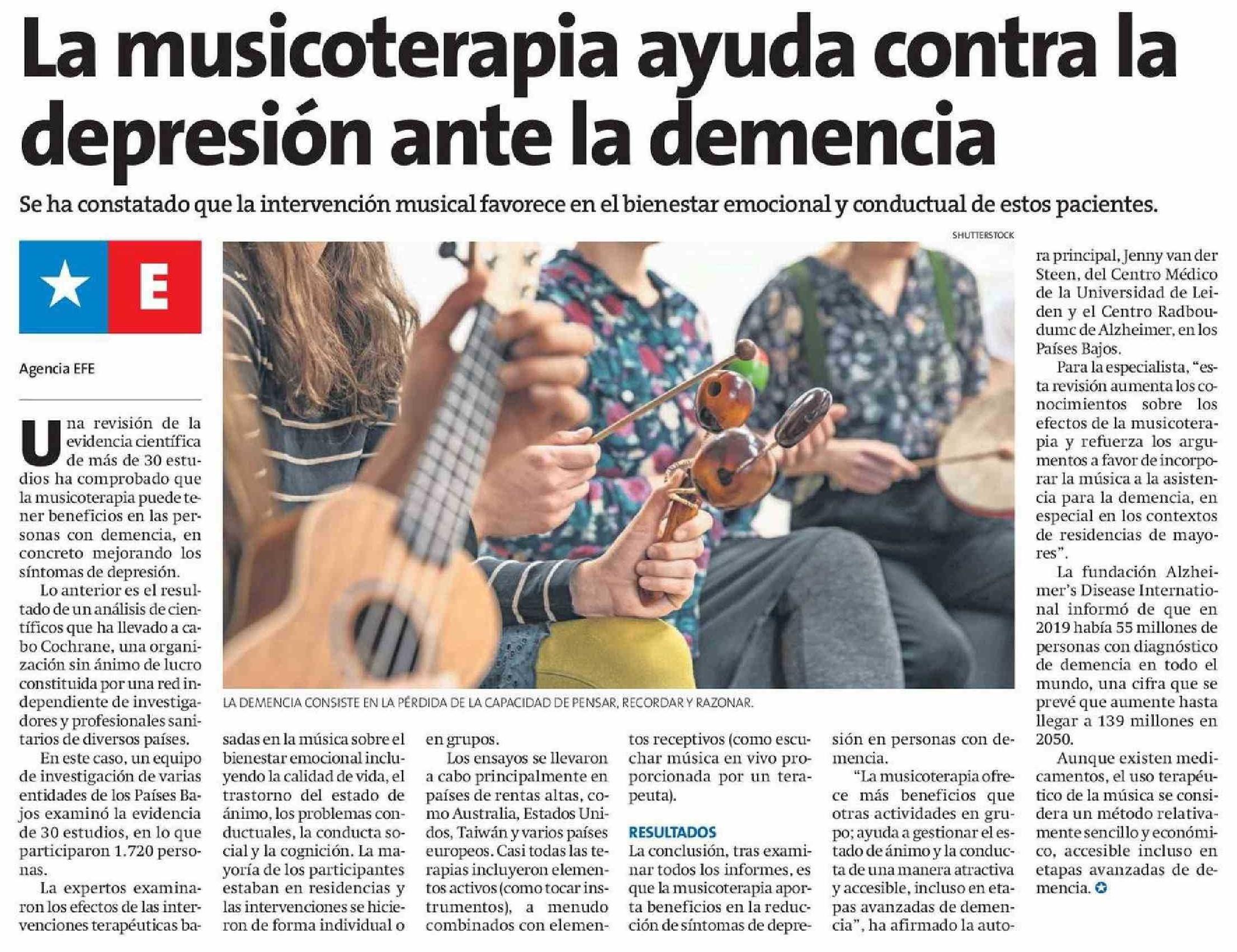 La musicoterapia ayuda contra la depresión ante la demencia