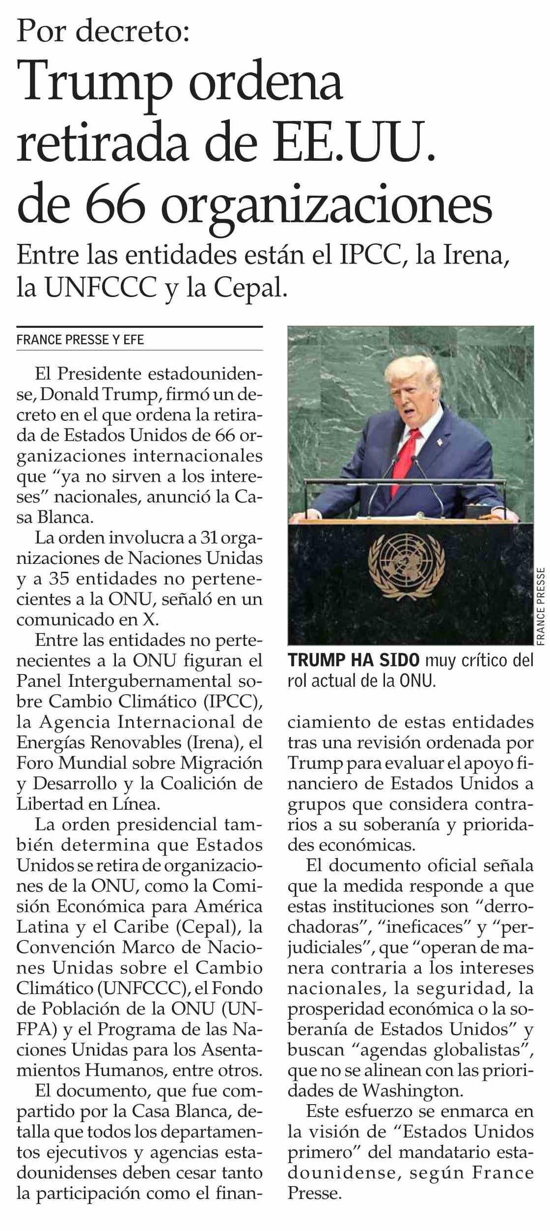 Trump ordena retirada de EE.UU. de 66 organizaciones