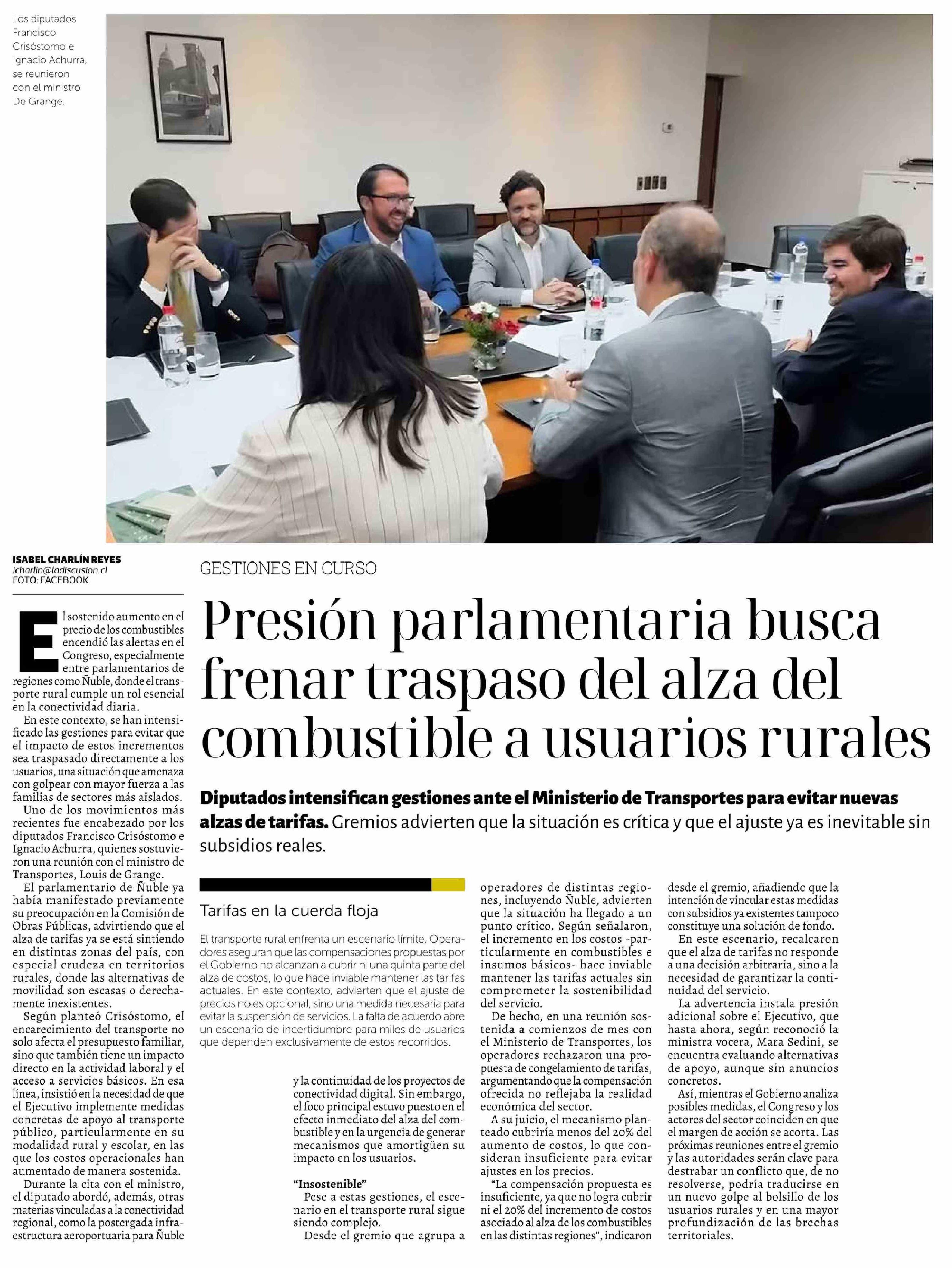 Presión parlamentaria busca frenar traspaso del alza del combustible a usuarios rurales