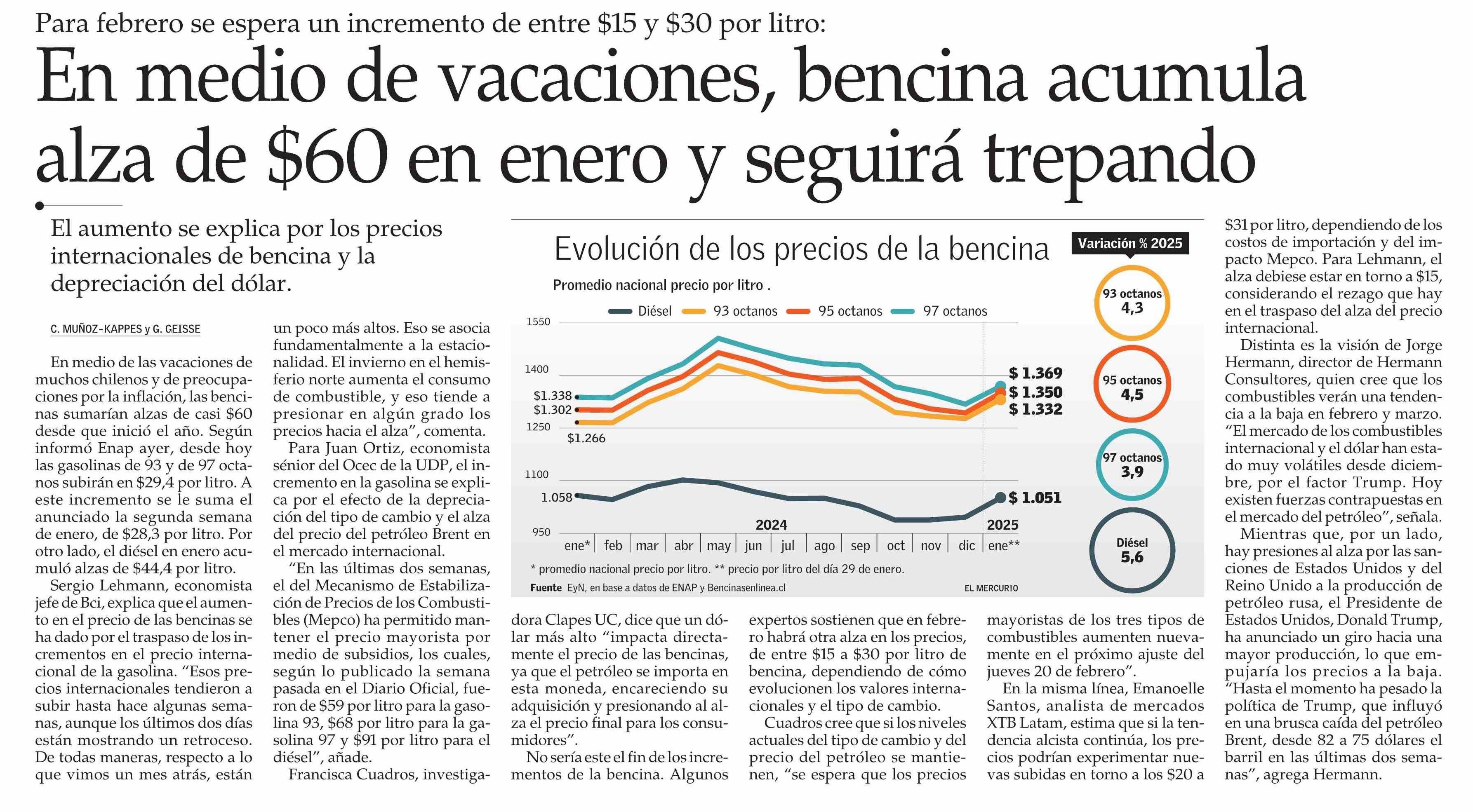 En medio de vacaciones, bencina acumula alza de $60 en enero y seguirá trepando